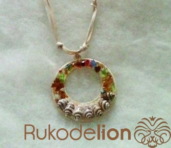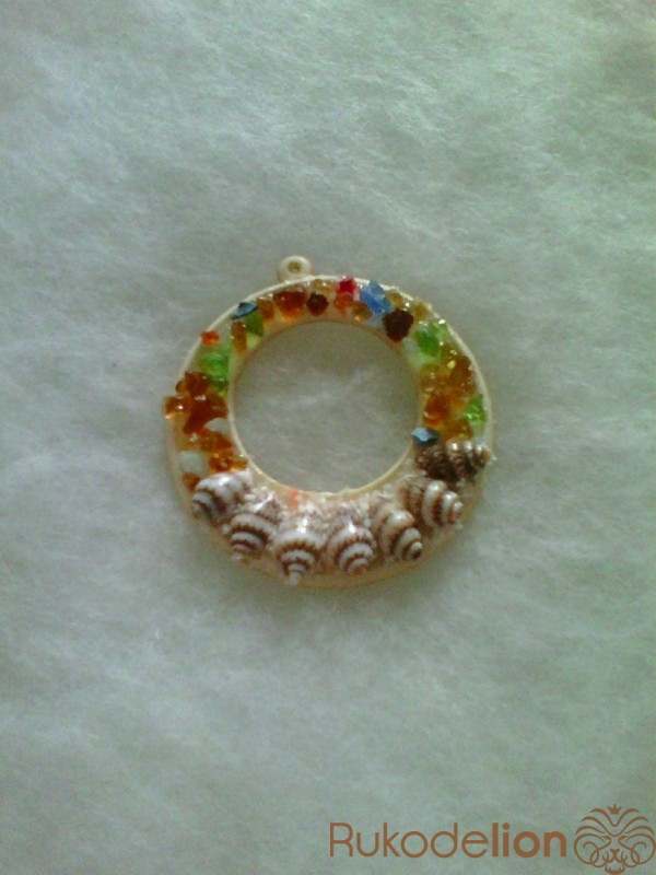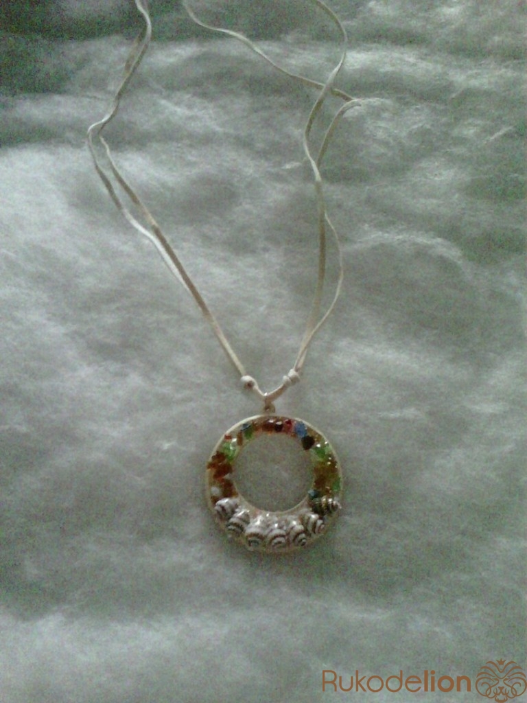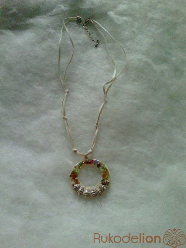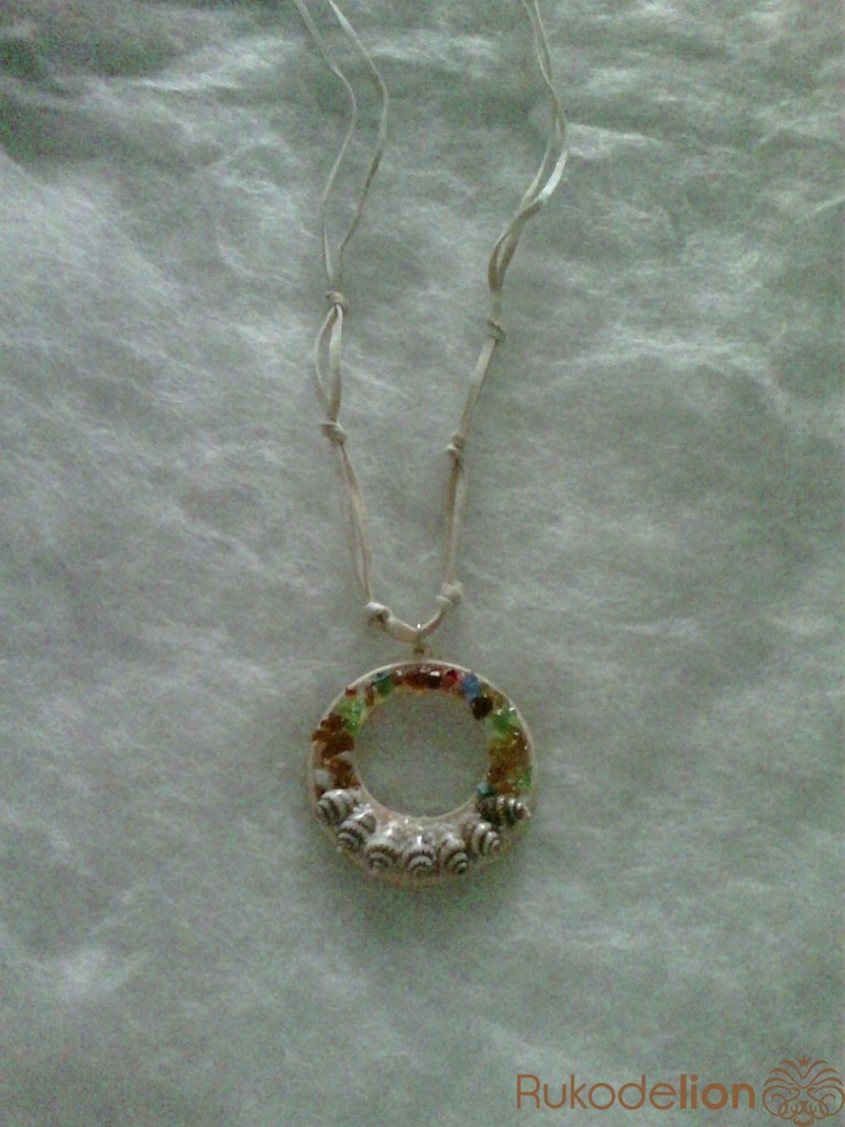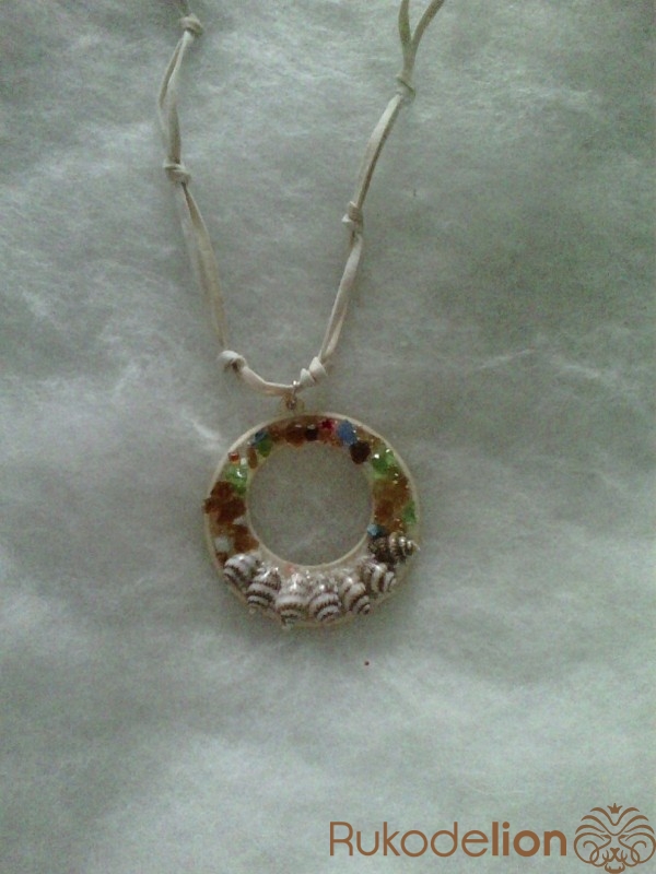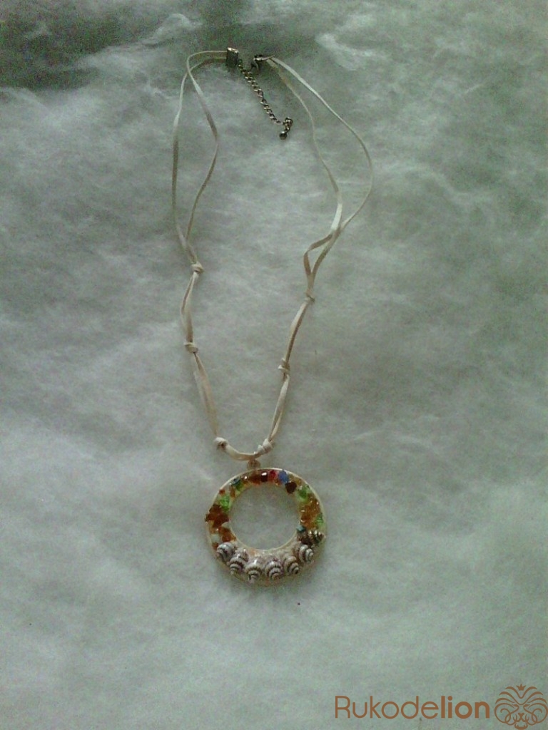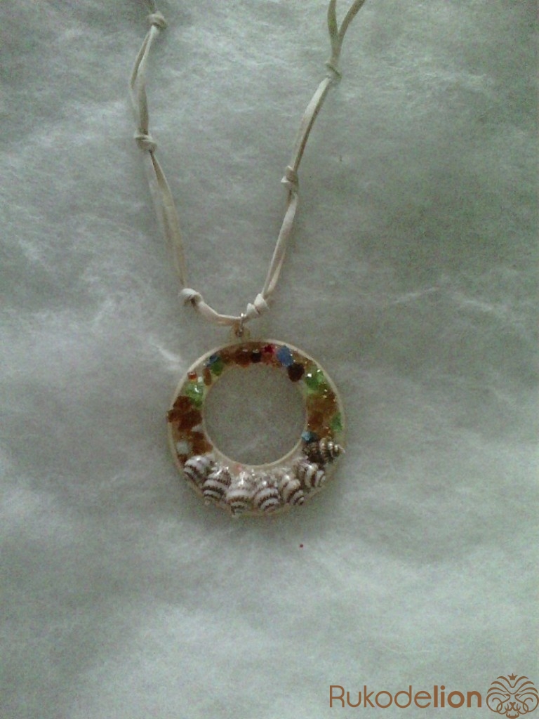 Кулон с ракушками и камнями в память о проведенном времени на море