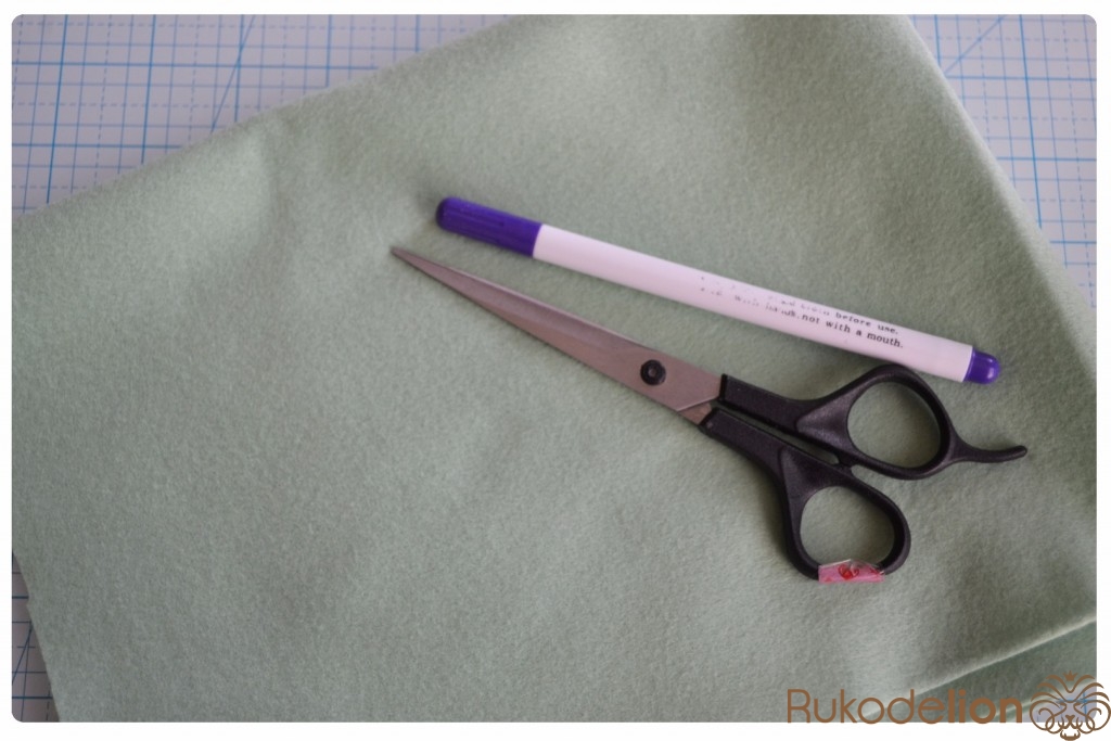 3. Инструменты и прочее: самоисчезающий маркер, ножницы, иголка, синтепон, белая краска по ткани, румяна, клей Момент Кристалл (либо любой другой ваш любимый текстильный клей), клеевой пистолет, дырокол по фетру
