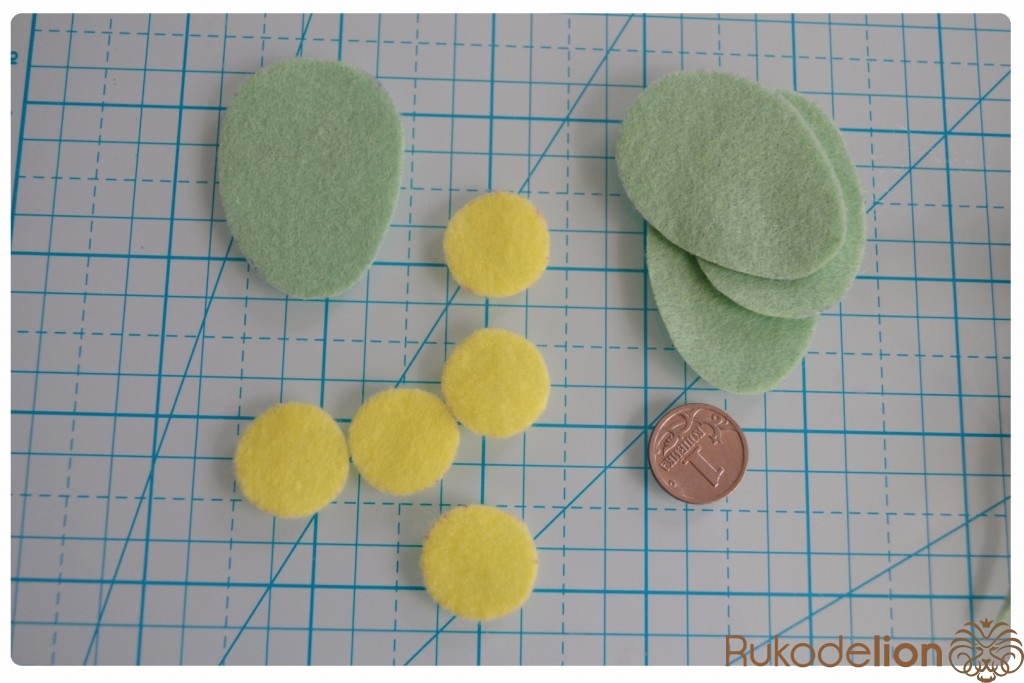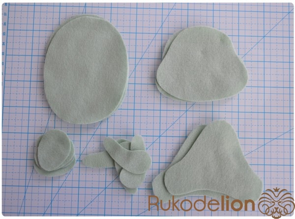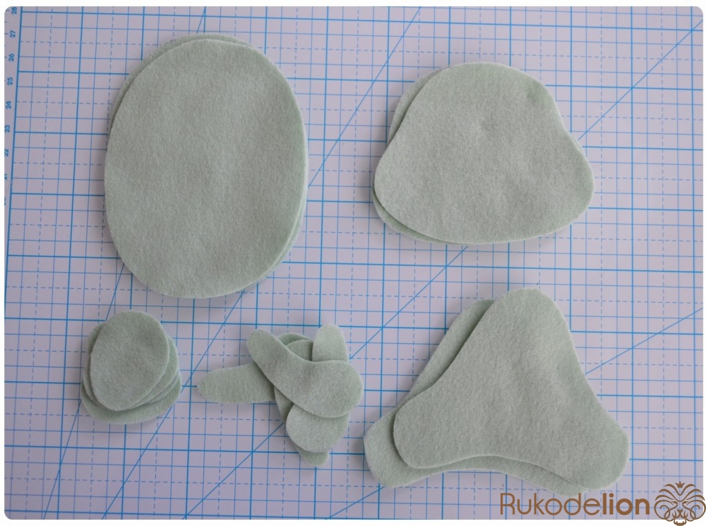 1. Фетр: синий, черный, зеленый, бежевый, желтый (обычно я использую испанский полиэстеровый фетр, но в этот раз я остановилась на корейском (1 мм толщиной), так как в гамме испанского фетра не нашла нужные мне оттенки)