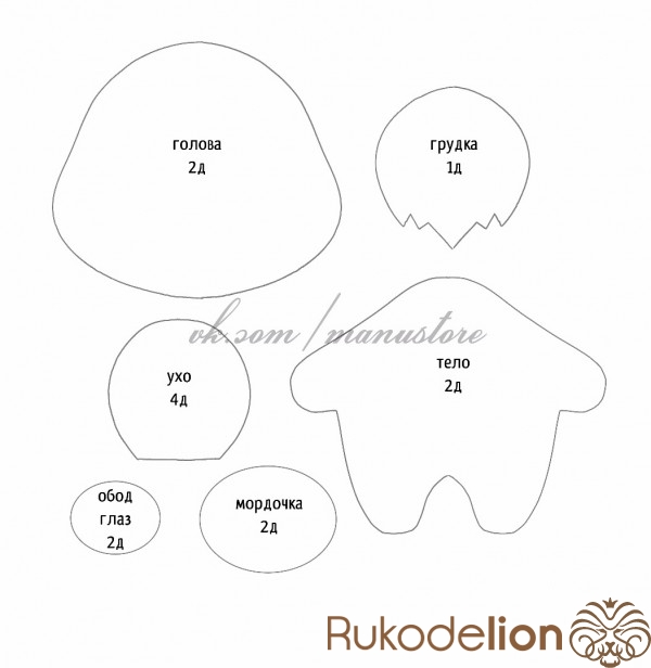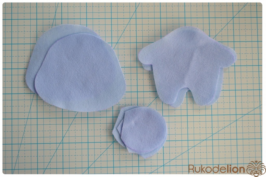 2. Фетр: голубой, белый, розовый, красный, черный, синий (я буду использовать мягкий полиэстеровый испанский тонкий (0,5мм) фетр)