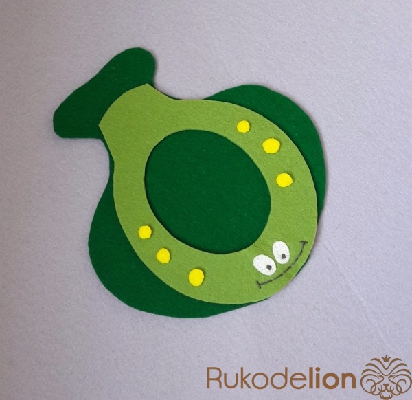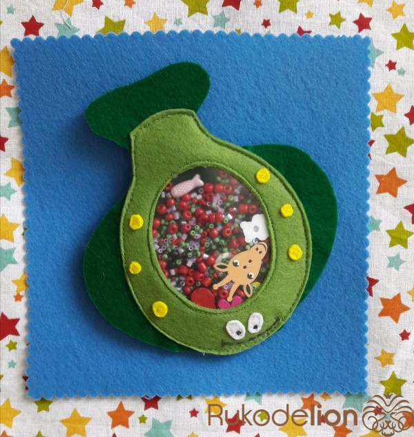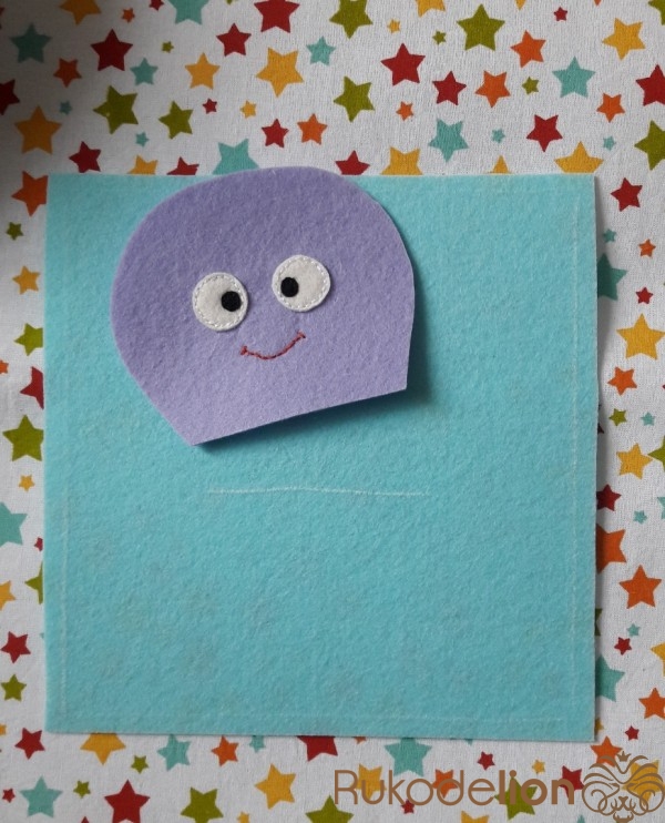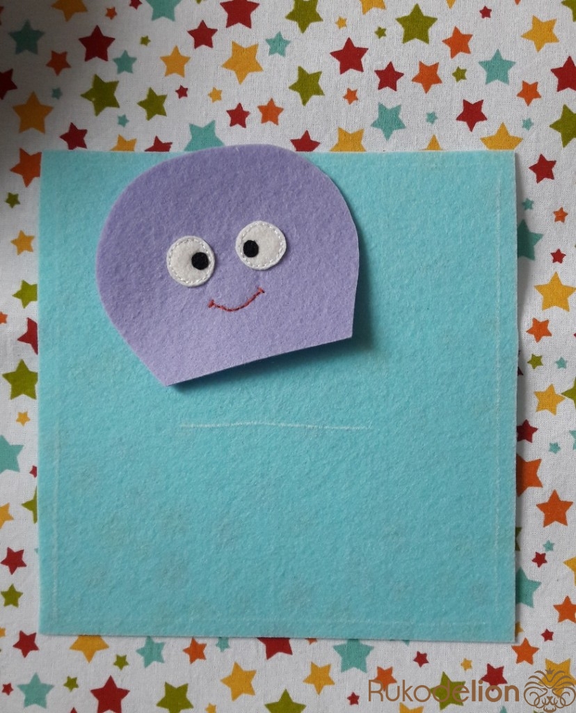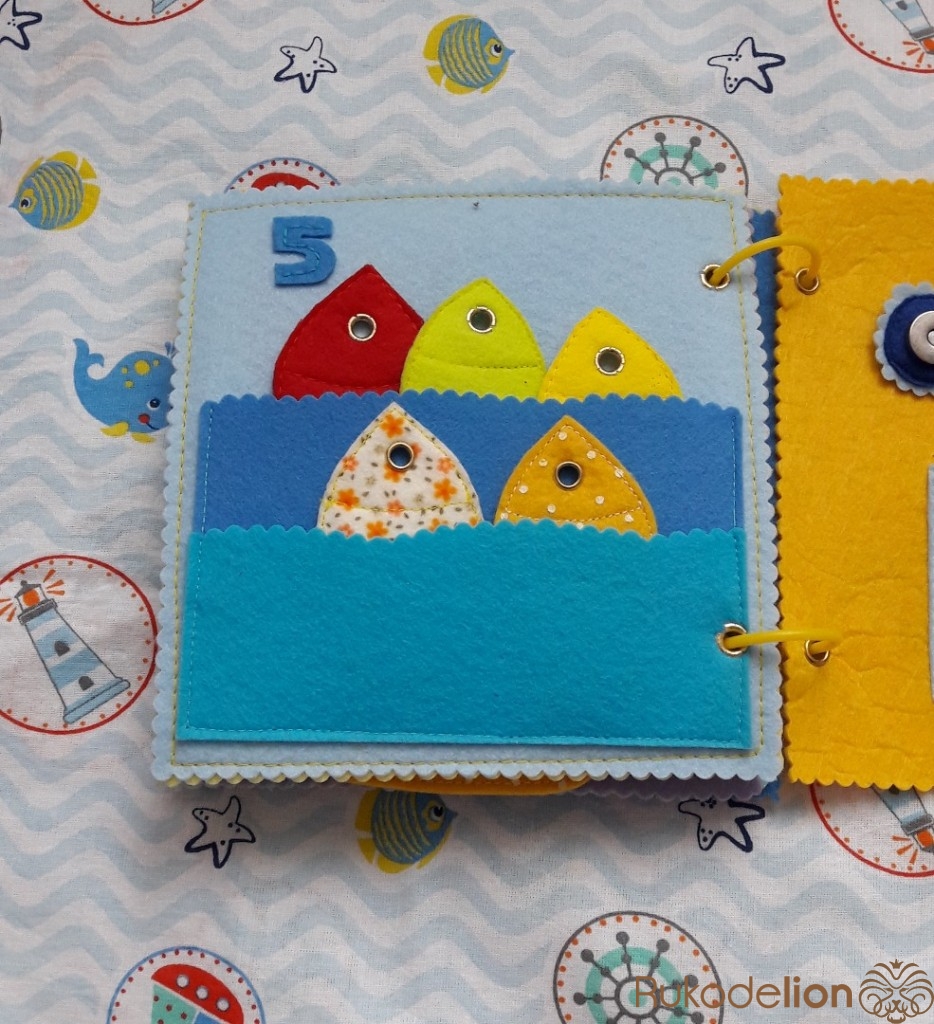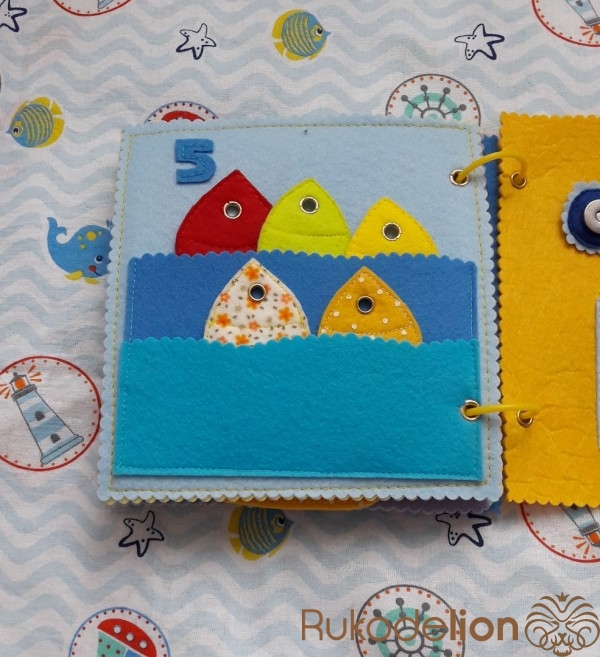 Мы сошьем с вами съемную игрушку - искалку "Веселый скат".Вырезаем детали согласно выкройке.Оформляем лицо ската и пришиваем желтые пятна.Берем папку и вырезаем овал чуть больше,чем наше отверстие в лицевой стороне,пришиваем. К задней части игрушки пришиваем жесткую часть липучки.К основе странички мягкую часть липучки.Теперь сшиваем  лицевую и заднюю часть игрушки,оставив не прошитым хвост,через него мы засипим в игрушку бисер и пуговицы.После этого хвост прошиваем.Игрушка готова.К основе странички пришиваем цифру 1.