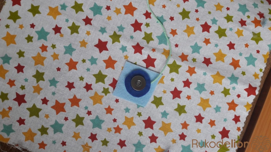 Шьем страничку 5.Удочка.Вырезаем палку для удочки.Из фетра вырезаем круг и на него устанавливаем магнитную кнопку,подкладываем фетр и вощеный шнур и прошиваем по кругу.Другой конец вощеного шнура пришиваем к палке.Берем фетр на него кладем палочку из фетра и между ними вощеный шнур,прошиваем по контуру.