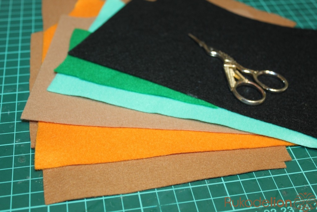 - на мятном (мягком) фетре - тело, рукава, воротник, шапочка