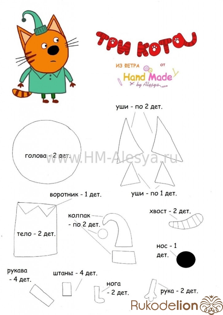 мастер-класс по пошиву Коржика можете посмотреть здесь: https://rukodelion.com/2137-master-klass-korzhik-iz-fetra