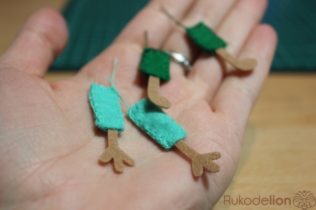 - на темно-зеленом (мягком) фетре - штаны.