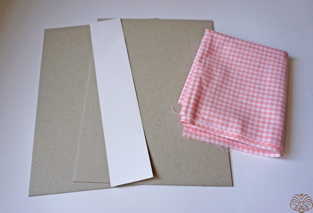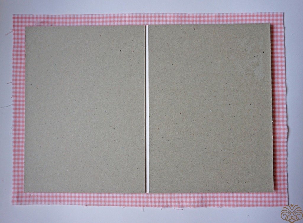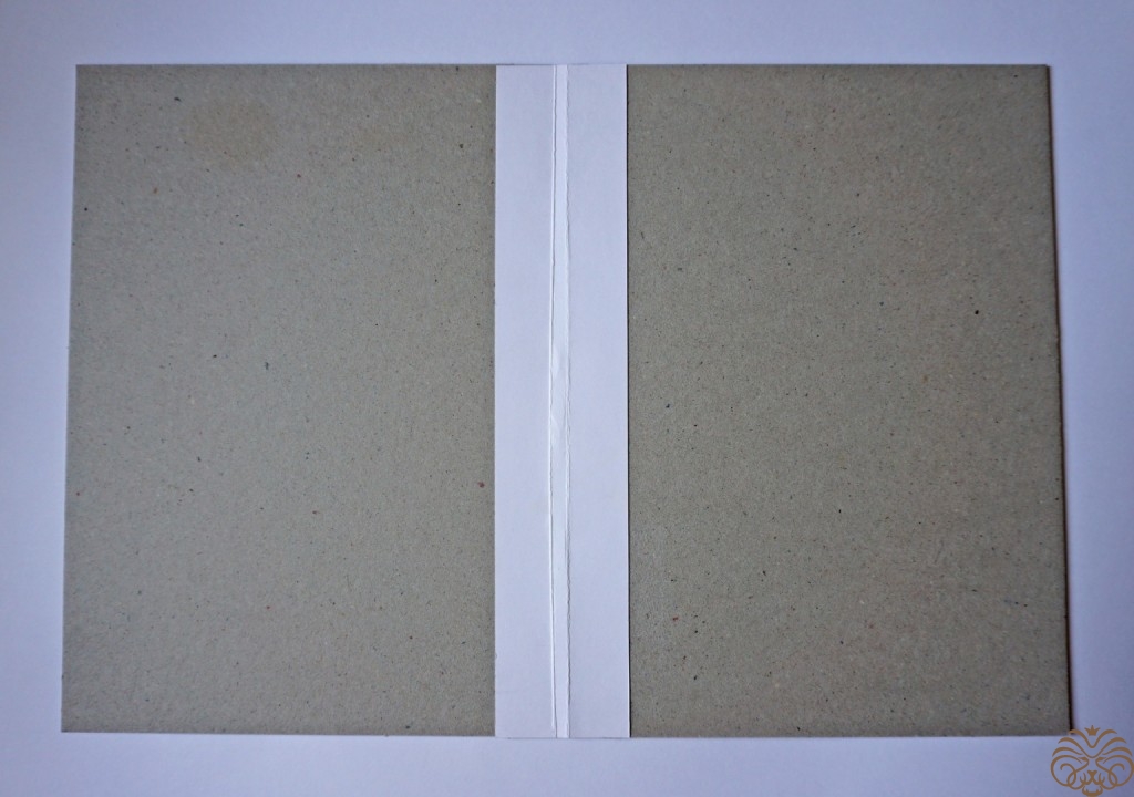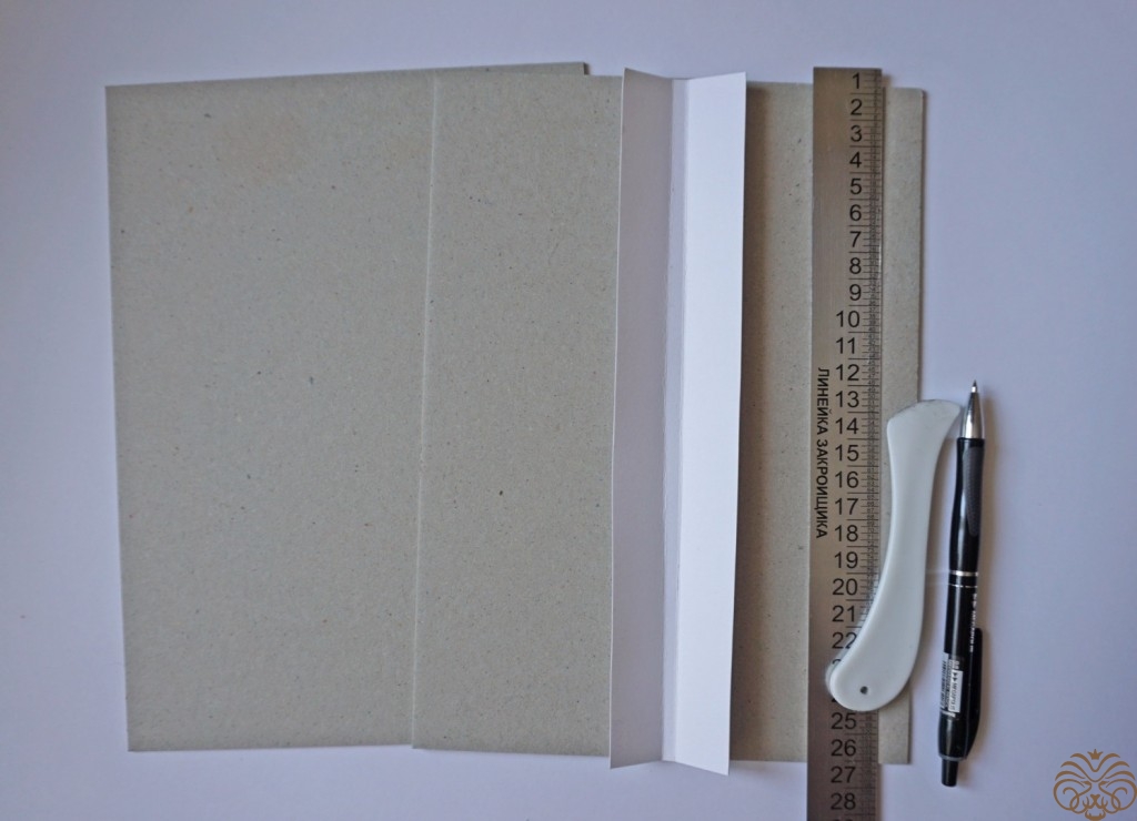 Делаем основу для нашей папки. Для этого вырезаем две заготовки для обложки чуть больше по формату чем свидетельство о рождении. Из плотной, например, акварельной бумаги вырезаем полоску равную по высоте нашим заготовкам, шириной 5,5 см. Полоску бигуем, отступая от каждой стороны по 2,5 см. Аккуратно приклеиваем полоску к заготовкам из картона.