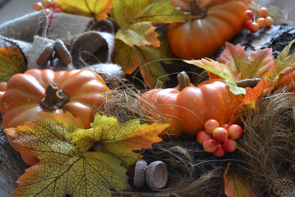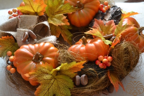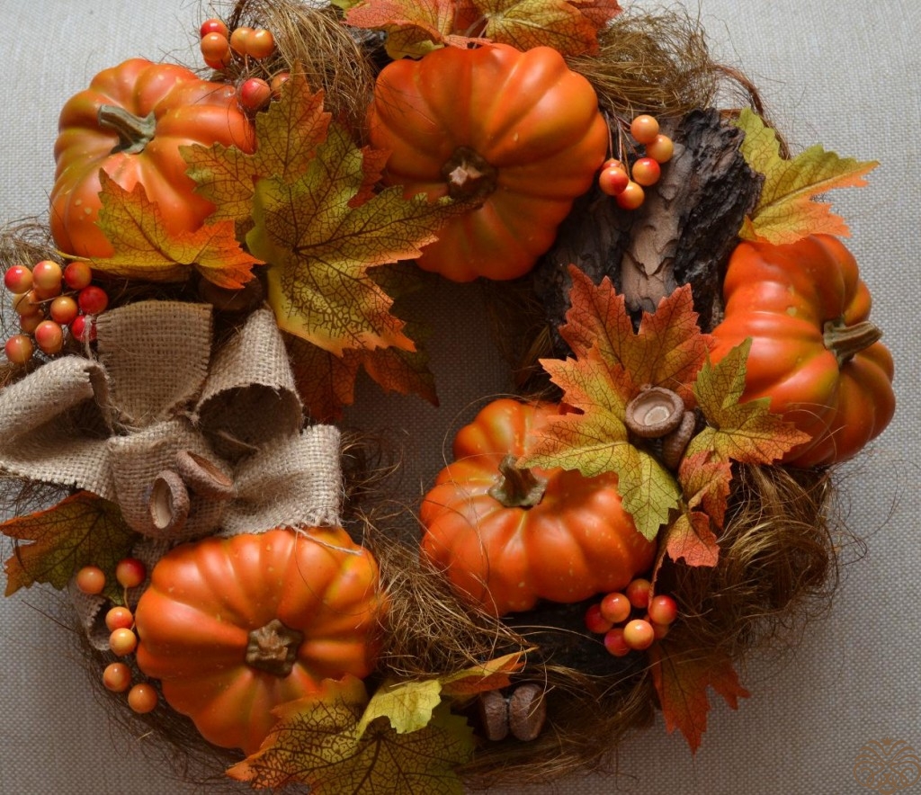 Кора дерева, искусственная тыква и ягоды, мешковина