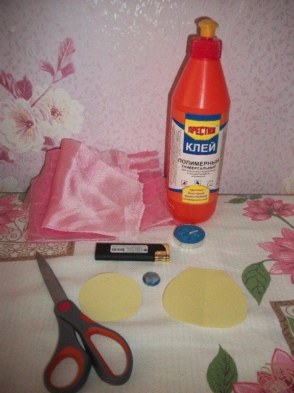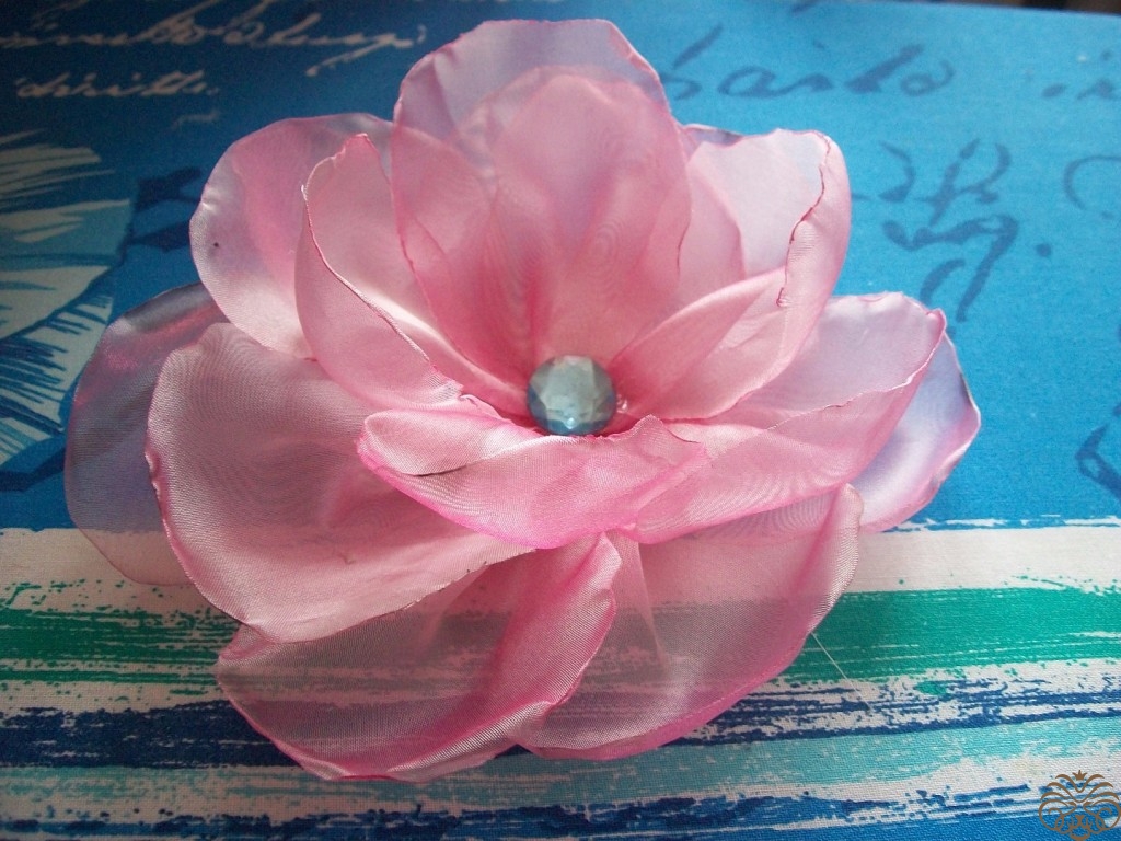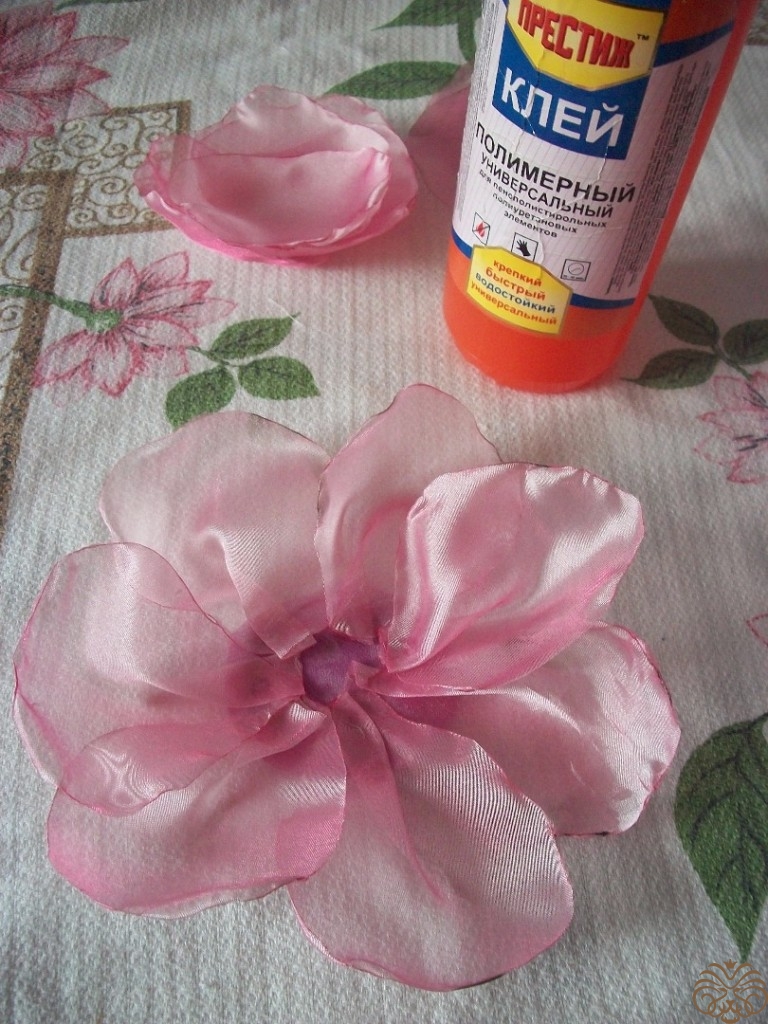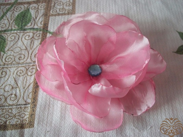 Простой цветок из органзы, может послужить как интерьерным украшением, так и аксессуаром для одежды и волос.