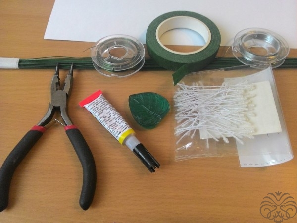 Фолористическая проволока - нужна толщиной 0,4-0,6 мм. Для стеблей.