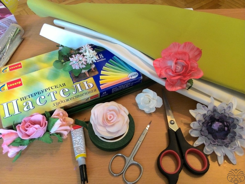 5. Это мастер класс по выбору инструментов и материалов, информация для тех кому понравились цветы но кто сам пока не знает с какой стороны к этому подойти. Не знаю как у всех но я каждый раз натыкалась на отсутствие такой информации и приходя в магазин накупала много лишнего а потом приходя домой и начиная что-то делать понимала что чего-то не хватает. ; )