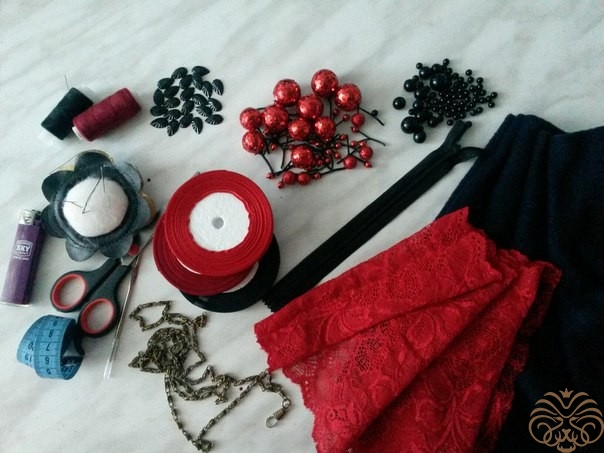 - бусины круглые красные (3 шт-2,5см; 5шт-1.5см; 4 шт-5мм)