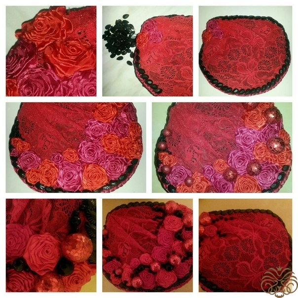 -пришиваем в правом верхнем углу 3 розы