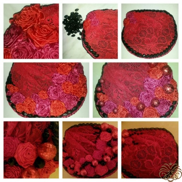-цветы начинаем пришивать с левого верхнего угла, накладывая одну розу на другую, чтобы не было промежутков. Оставляем правый угол свободным