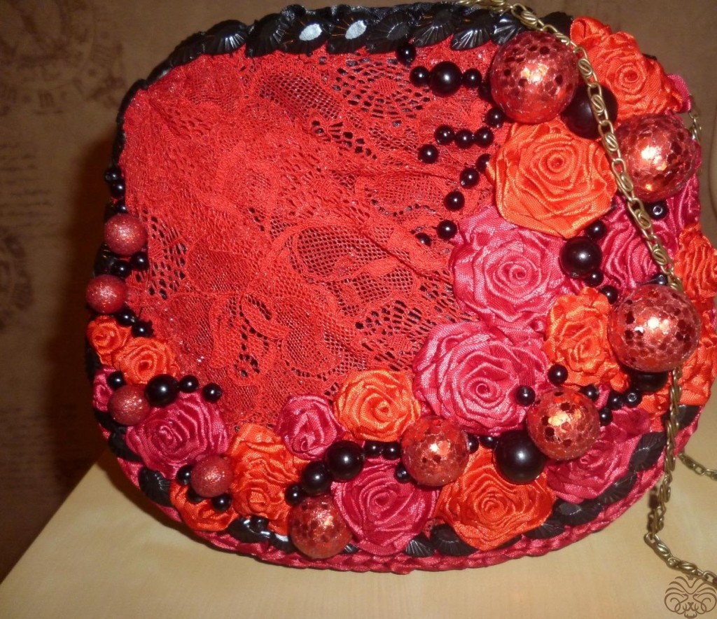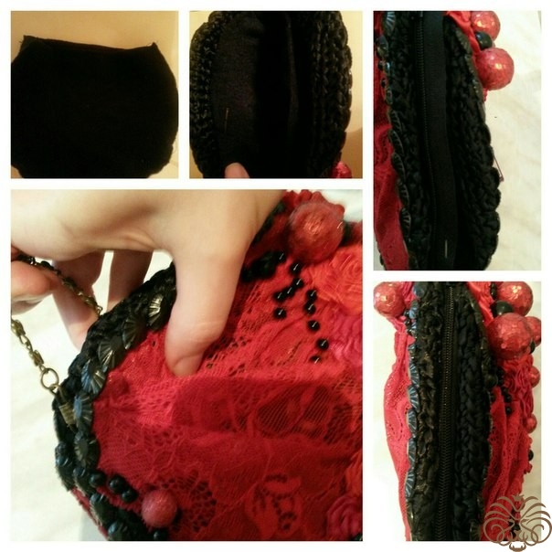 с обоих сторон пришиваем бусины листики к к низу и бокам сумки, чтобы придать устойчивость