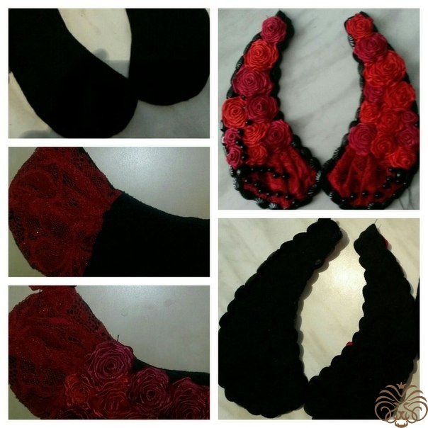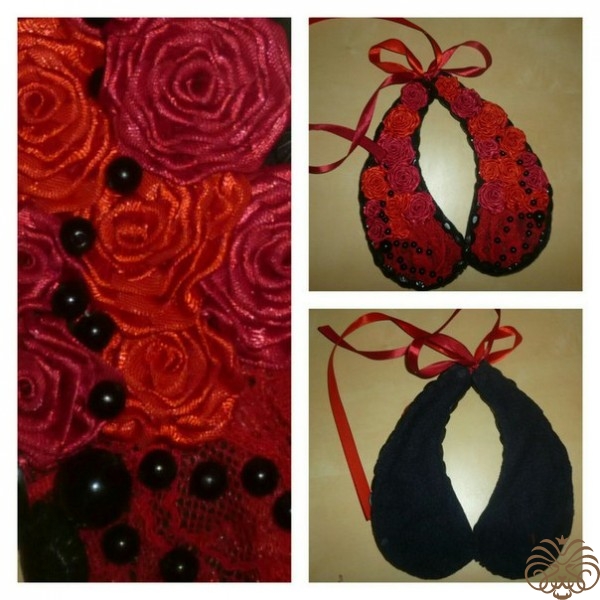 - второю половину воротника , украшаем в таком же порядке, фиксируя в зеркальном отражении