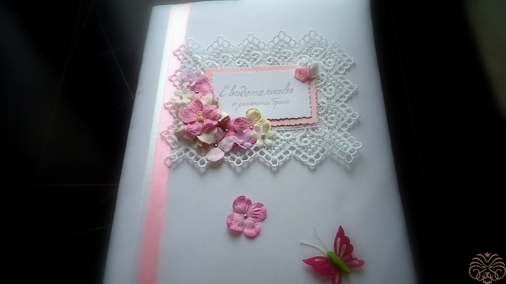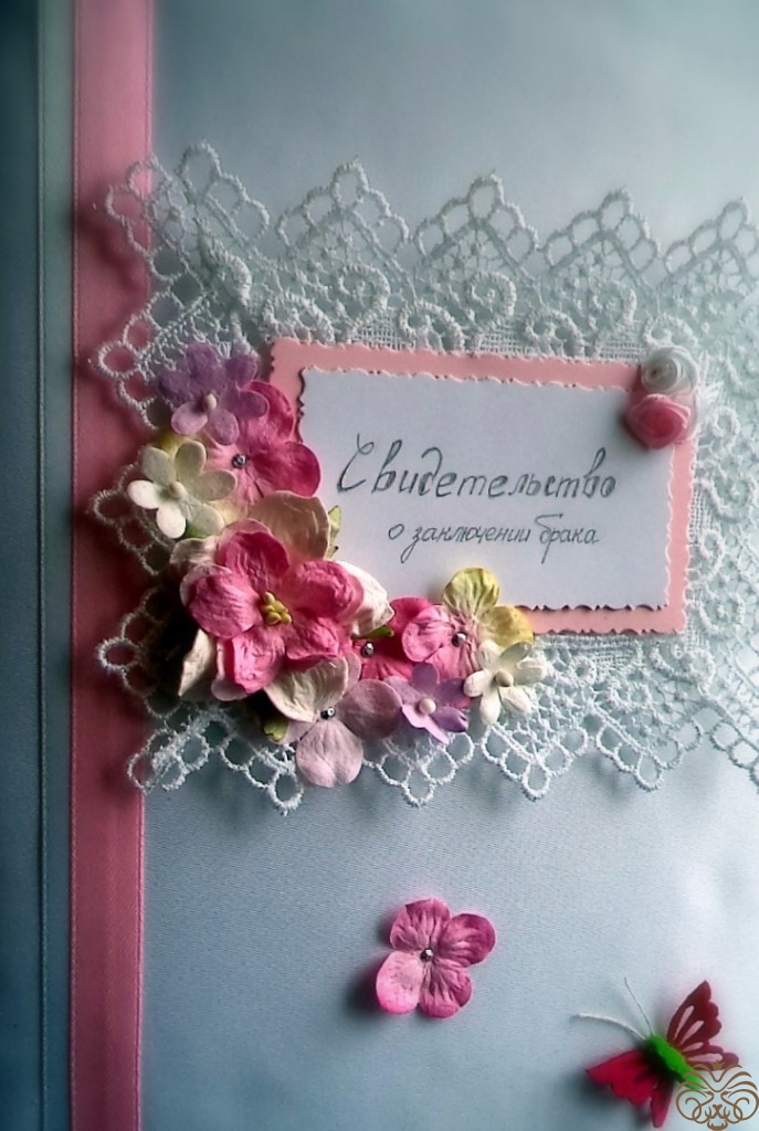Работа в технике скрапбукинг - папка для свидетельства о браке, чтобы свадьба была незабываемой!