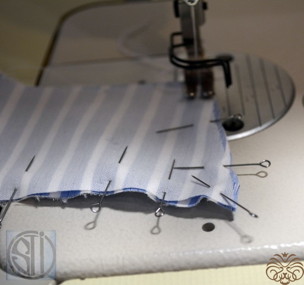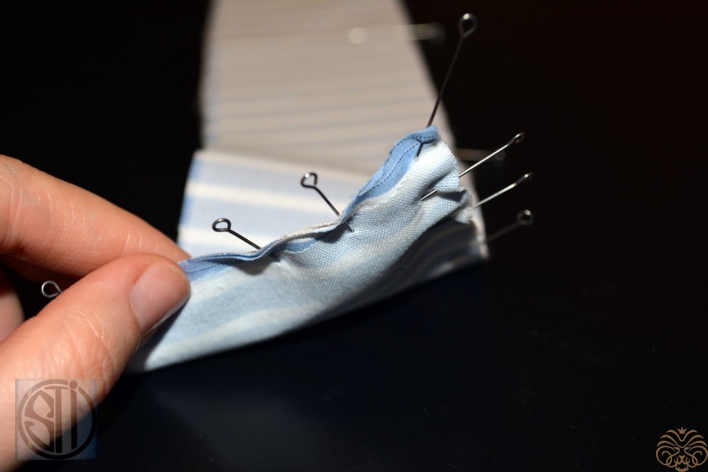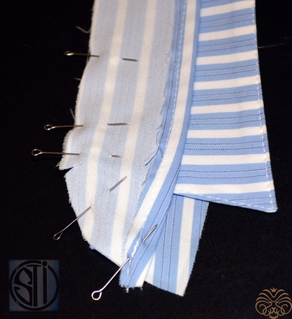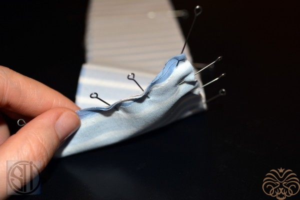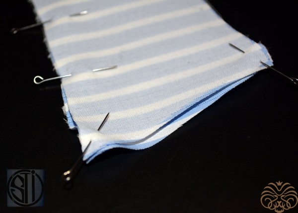 6. Скрепить иголочками, можно сметать воротник для удобства.