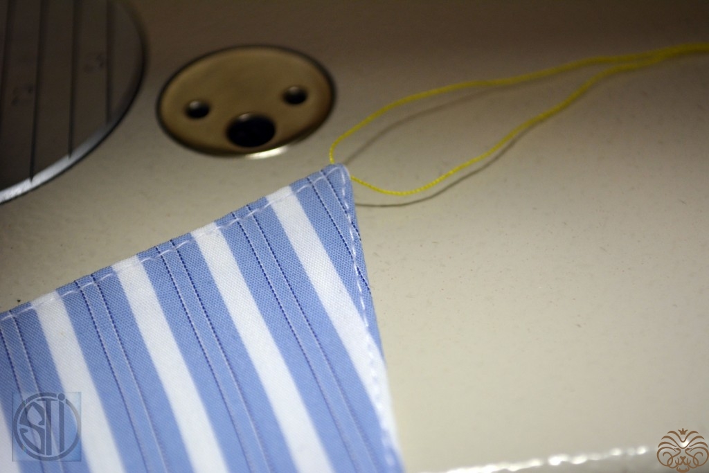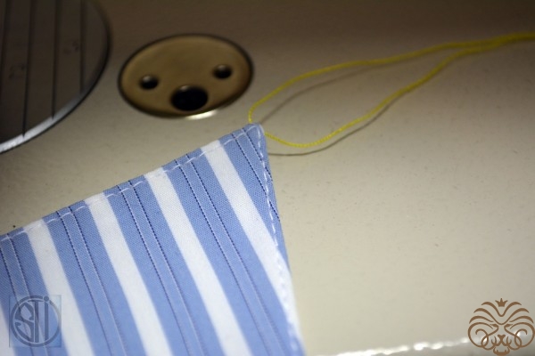 Важно! для получения хорошей строчки в концах воротника протягиваем ниточку и тянем за неё при выполнении строчки.