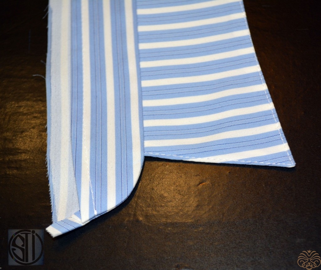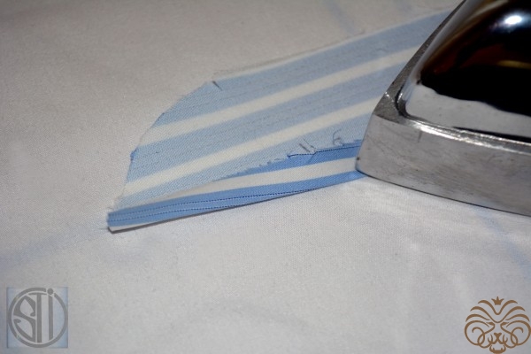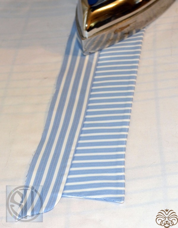 11. Заутюжить нижний срез нижней части стойки на 10мм.