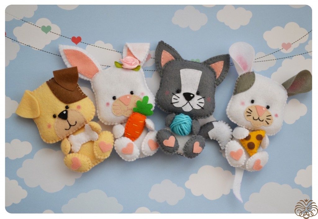 Как сделать 4 милых зверька из фетра, используя одну выкройку?