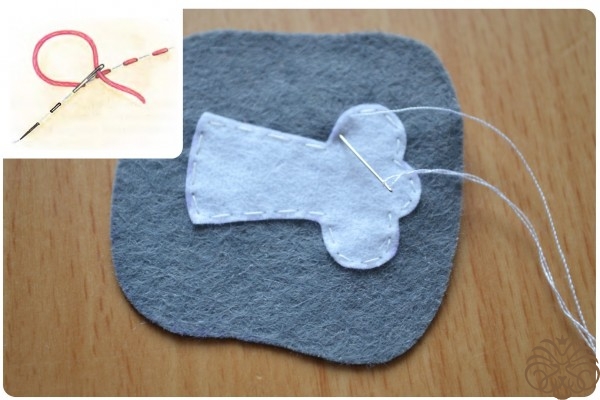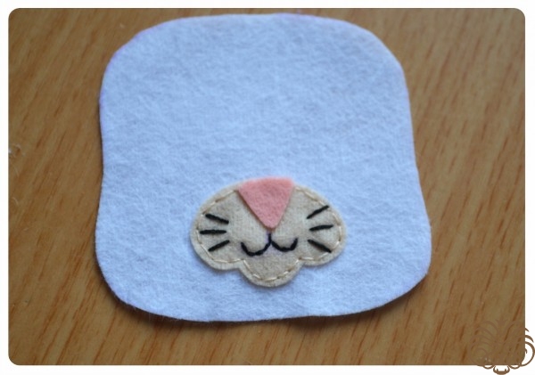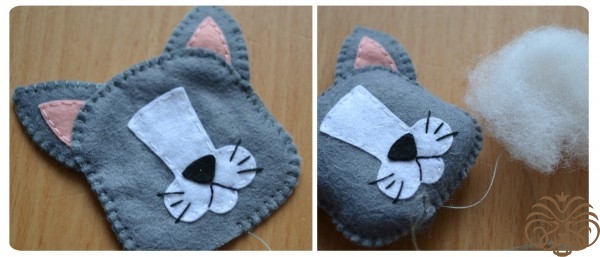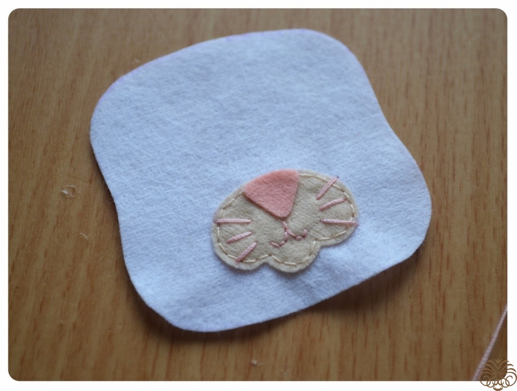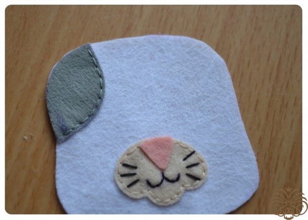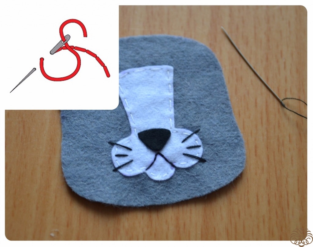 Пришиваем белую мордочку кота к серой детали головы швом "вперед иголка"