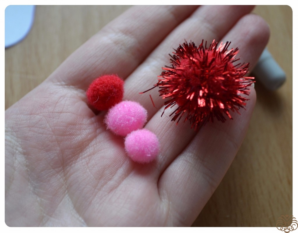 3. Инструменты и прочее: самоисчезающий маркер, ножницы, иголка, синтепон, клей Момент Кристалл, мелок или кусочек мыла, крупный бисер, румяна, белая краска по ткани, кисточка, помпоны, цветочек, клеевой пистолет, клубок яркой пряжи