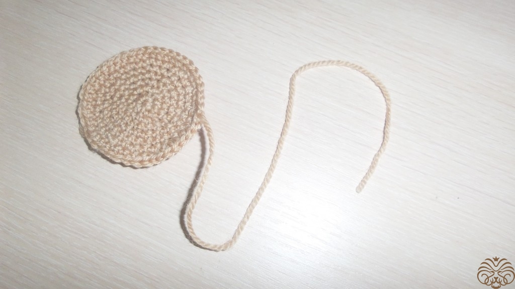 Оберните бежевую нить вокруг пальца и сделайте центральное кольцо.