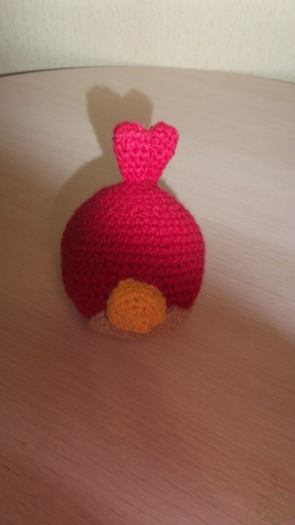 Набейте туловище синтепоном или халлофайбером. Пришейте к туловищу нагрудное пятно. Набейте клюв и пришейте его к туловищу. С помощью иглы и бежевой нити проложите через середину клюва линию. Пришейте хохолок к верху туловища. Вережьте глаза из белого и черного фетра, брови и хвост- из черного. Приклейте фетровые части с помощь термо пистолета.