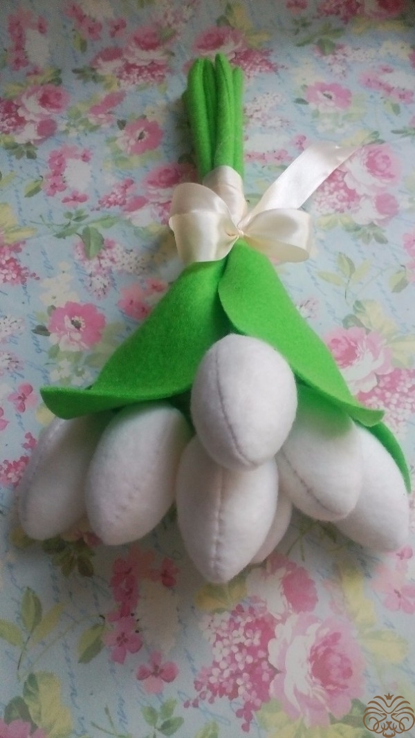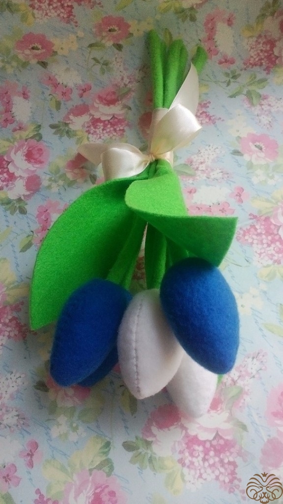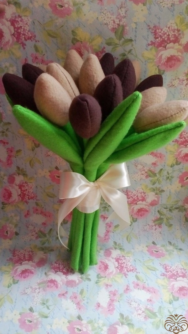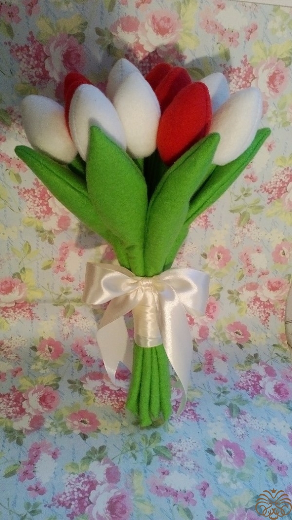 Бутон высотой 8 см выполнен из флиса, ножка и листья из фетра