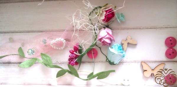 4. Еще один слой фатина под шитье  и маленьких деревянных бабочек для воздушности .