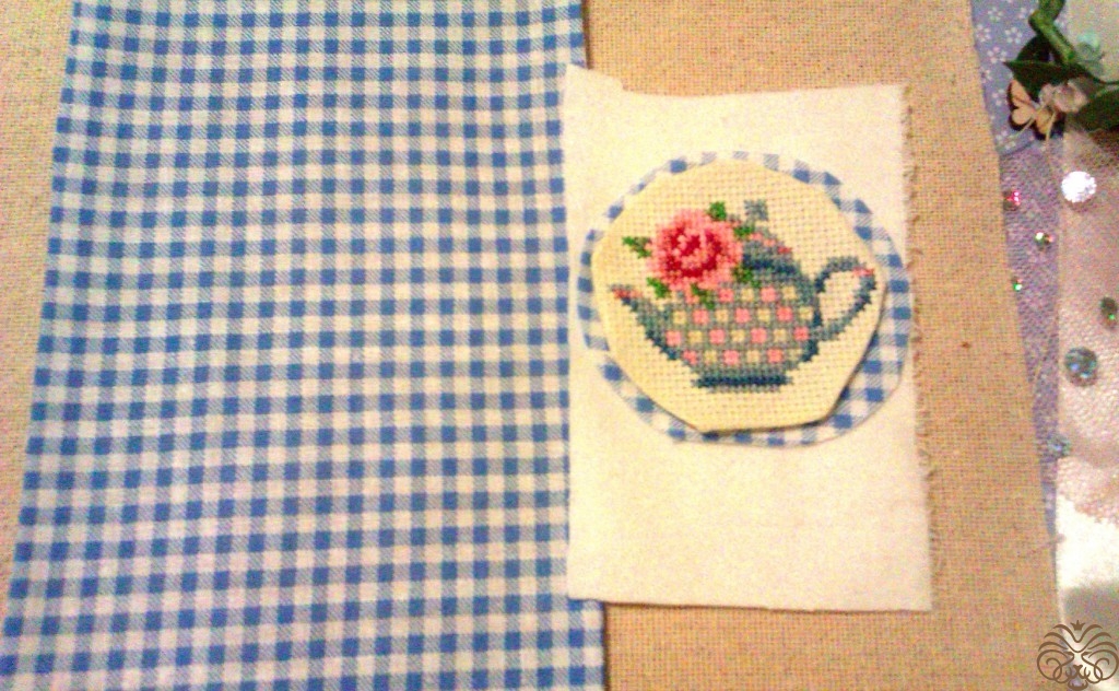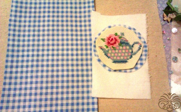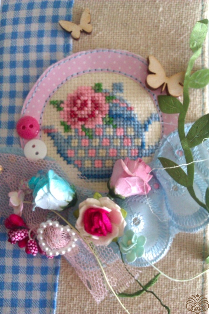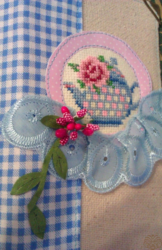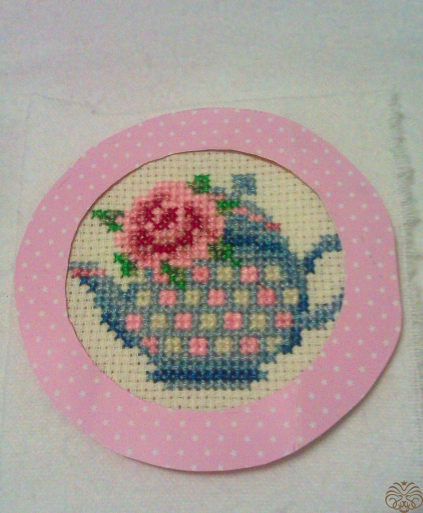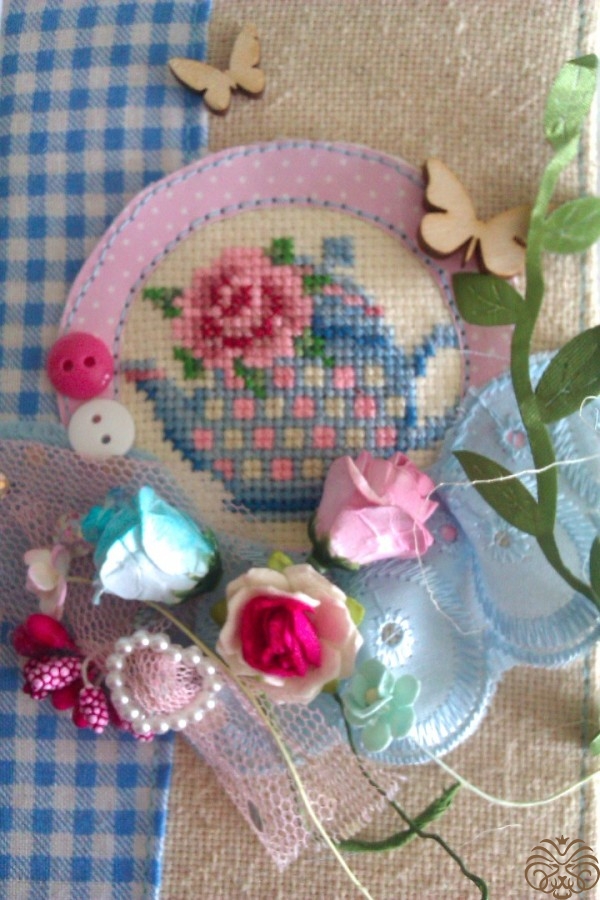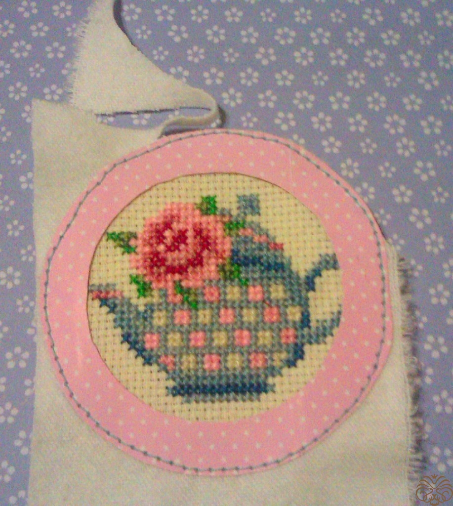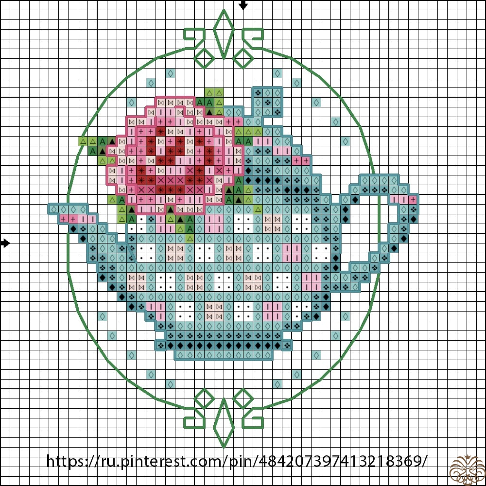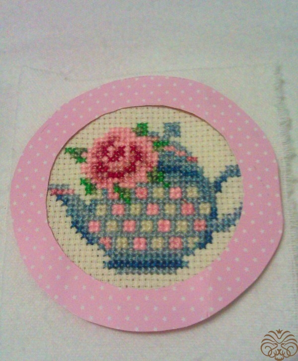Специально для этой шоколадницы я вышила  такой вот чайник с розочкой.  Нашла вот здесь https://ru.pinterest.com/pin/484207397413218369/. Цвета подобрала сама.