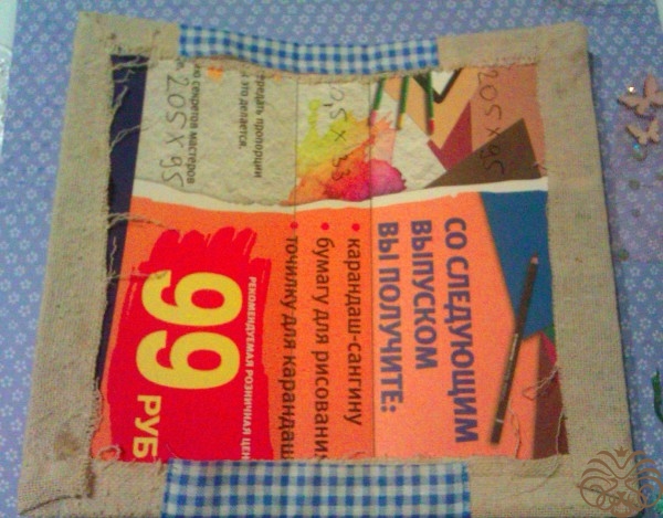 Тщательно промазываем донышко клеем, прижимаем к обложке. Ставим под пресс, сушим. Через часик подклеиваем суперклеем торчащие уголки, все готово. Настал самый интересный момент: декорирование обложки.