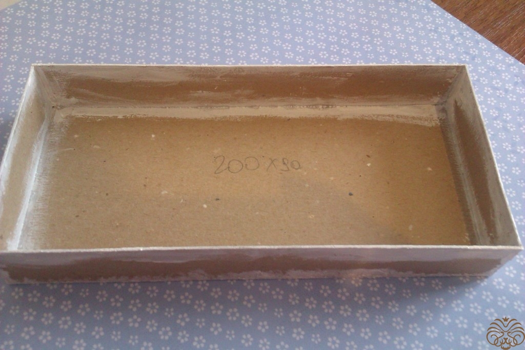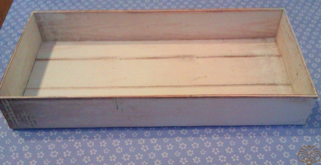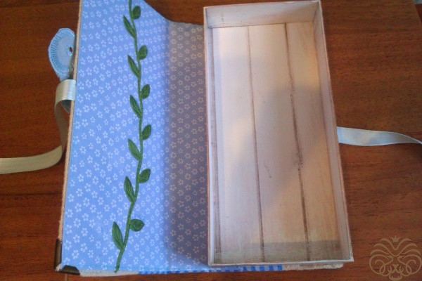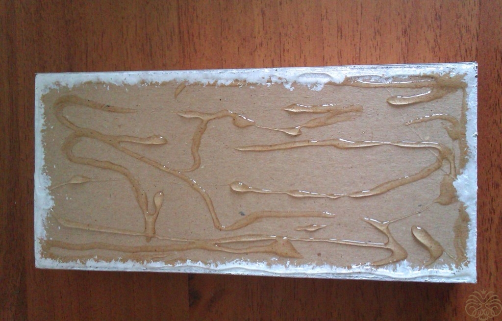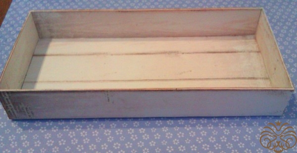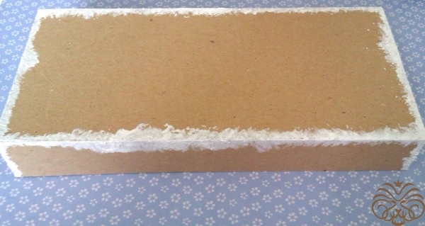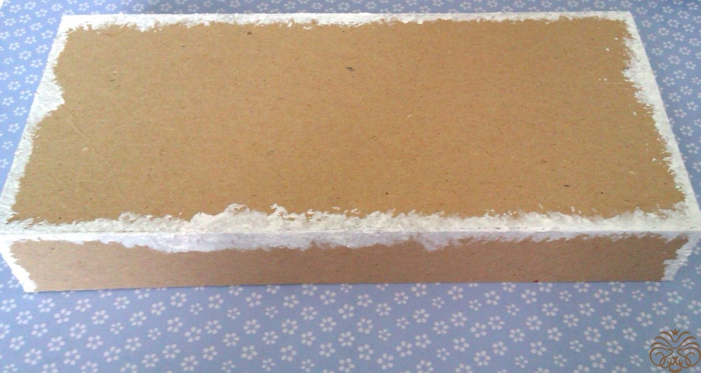 Тем временем подсохла коробочка. Все ее стыки и края необходимо прокрасит белой акриловой краской для аккуратности работы. Сушим. Акриловая краска сохнет быстро.