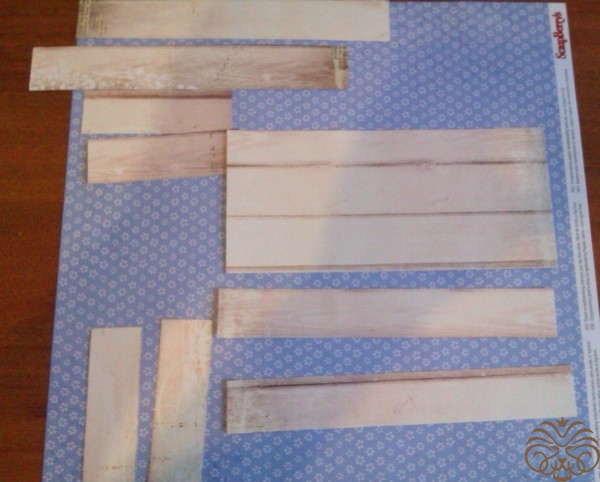Подбираем бумагу для обклеивания стенок и донышка коробочки. Вот такие прямоугольники скрапбумаги мне понадобились для обклеивания.  Вырезаем, тонируем края штемпельной подушечкой. При приклеивании немного подгоняем по размеру. Клеим все на прозрачный клей. Обклеиваем сначала внутренние стороны и донышко, затем внешние. Еще раз тонируем края и стыки при необходимости. Оставляем сушиться.