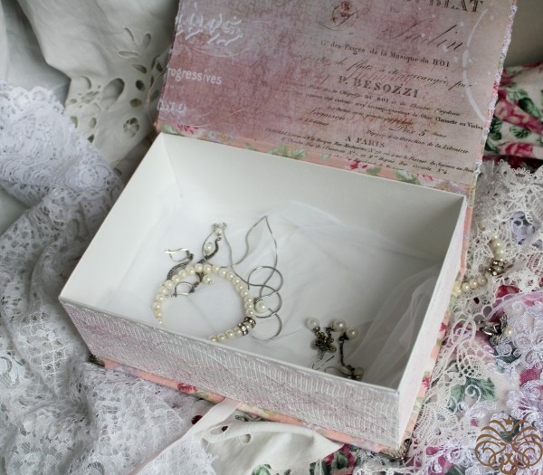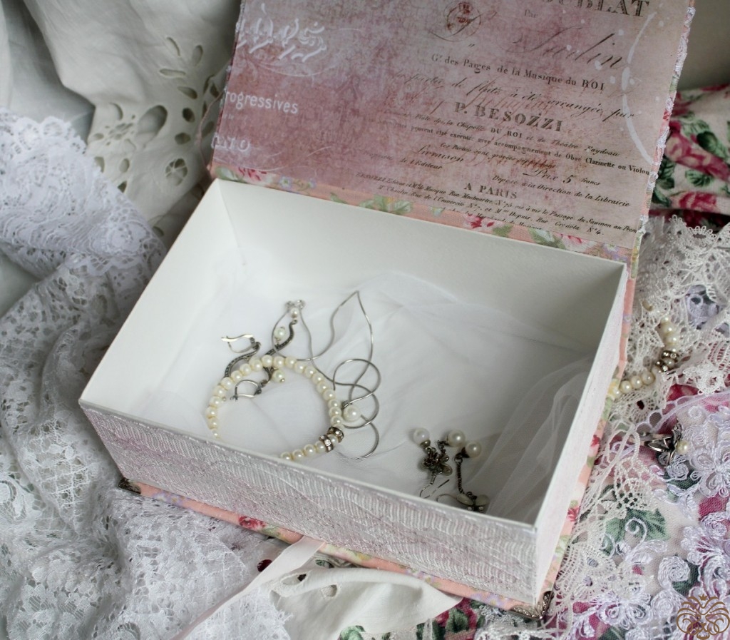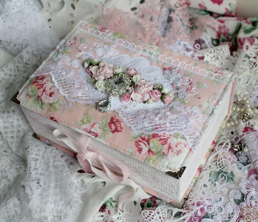 Шкатулка для украшений! Отличный подарок для девушки. Сделана из картона, бумаги, обтянута хлопковой тканью, украшена кружевом, бумажными ц