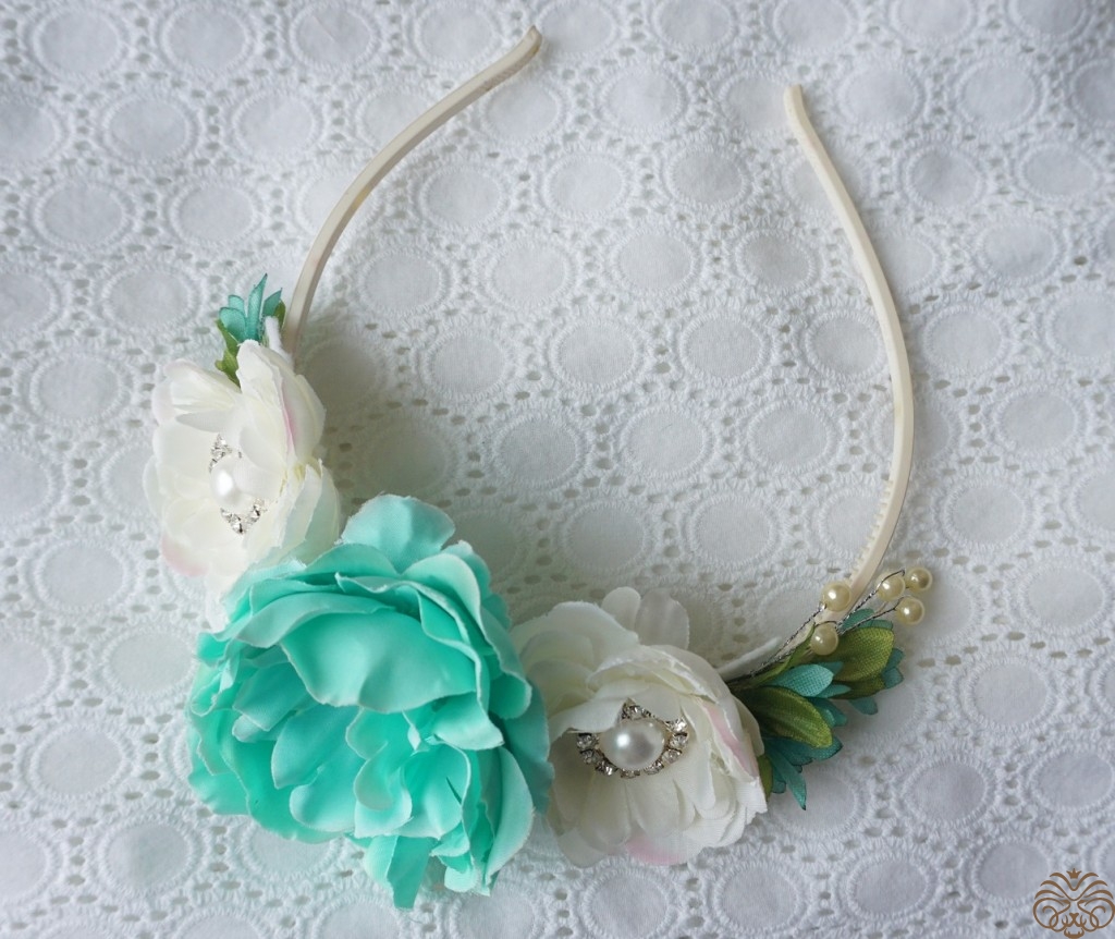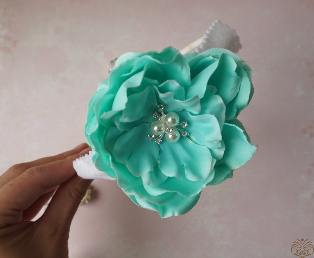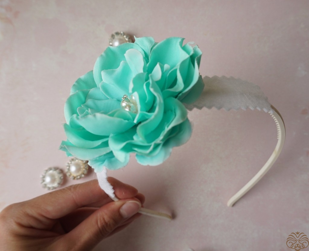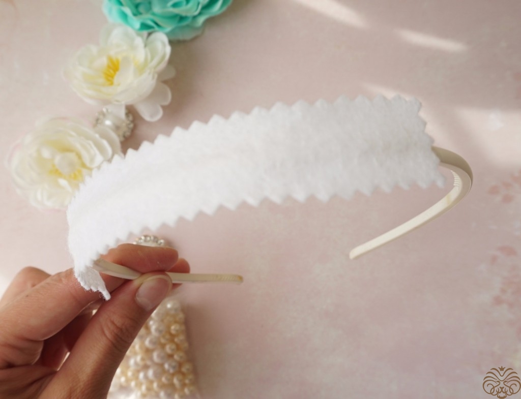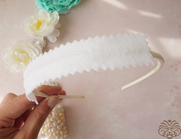 Приклеиваем фетр к ободку в том месте, где будут цветы. Я их приклеиваю немного ассиметрично (т.е. на одну сторону, не посередине).