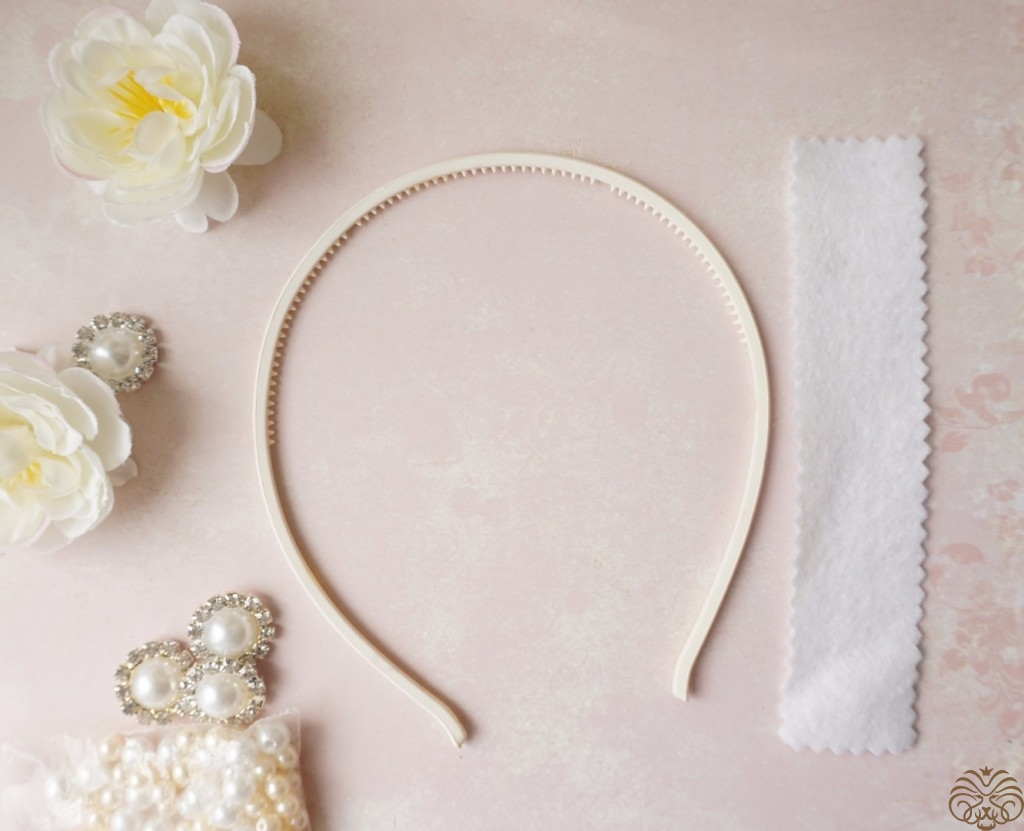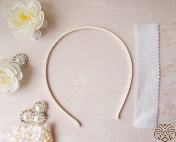 Основа для ободка тонкая, а цветы достаточно пышные, поэтому нам необходимо сделать для них "подложку". Я использовала фетр, можно также использовать кружево и т.п.