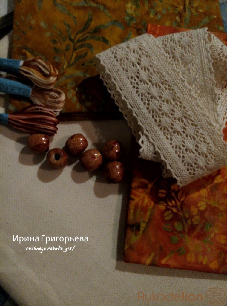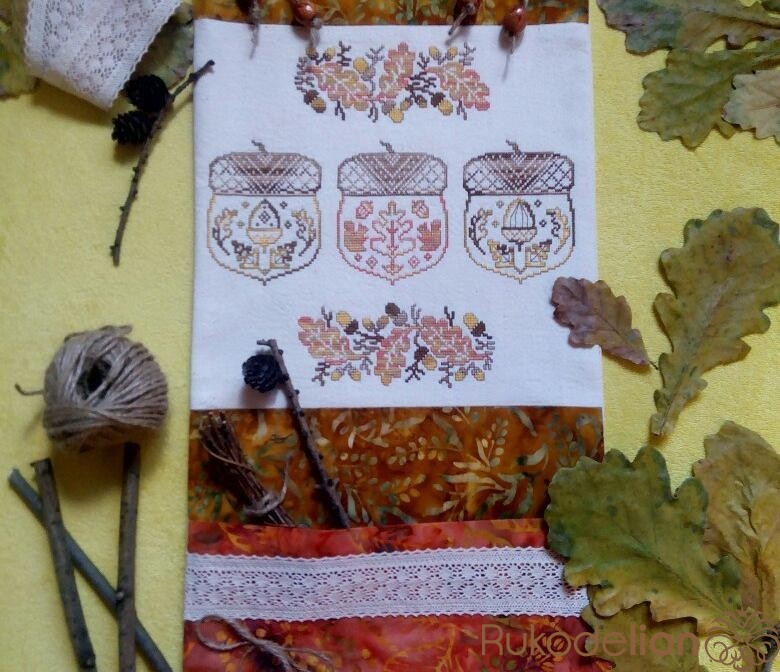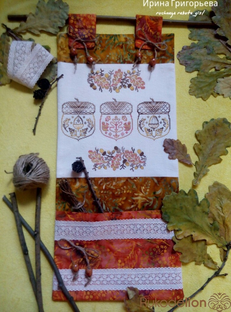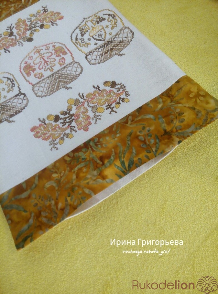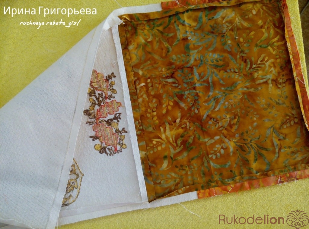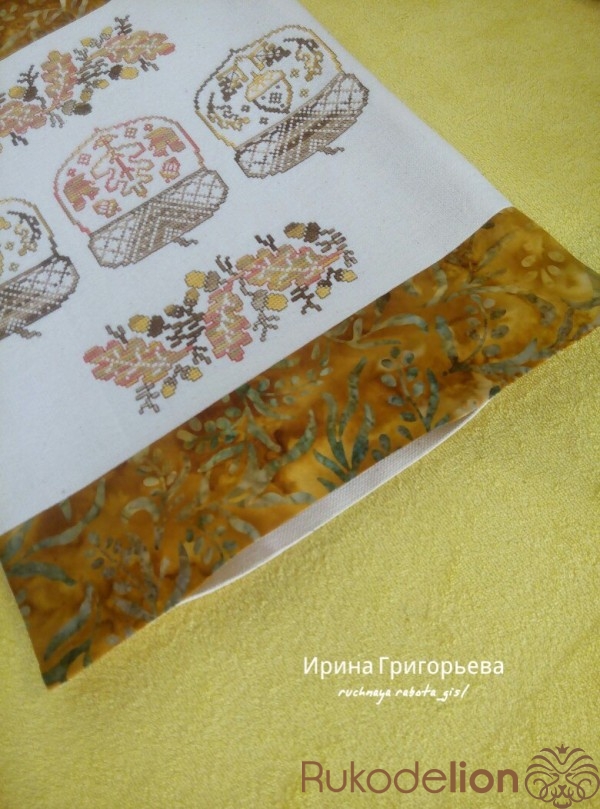 Шаг1. Вышить осенний сюжет, выстирать, отутюжить, обрезать до размера 26,5/25см., оставляя припуски на швы по 1см. с каждой стороны.