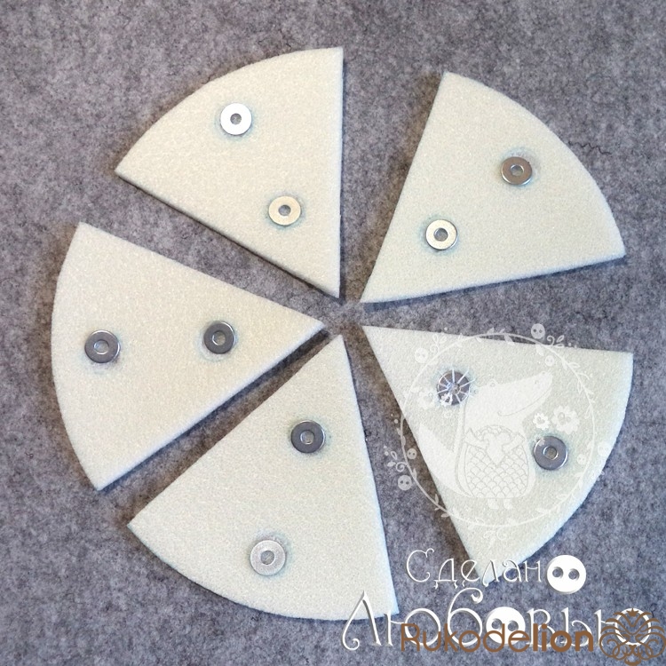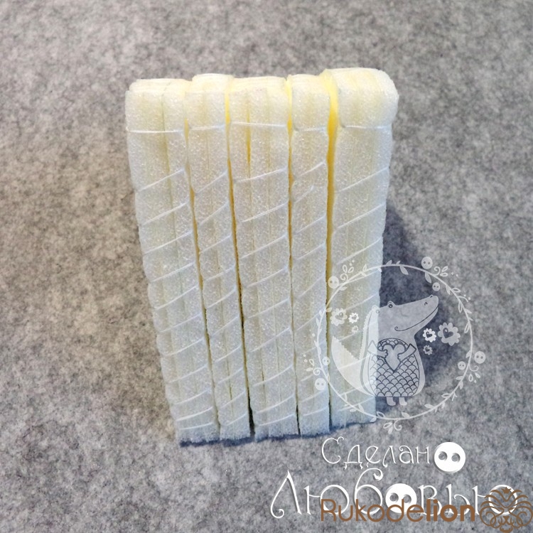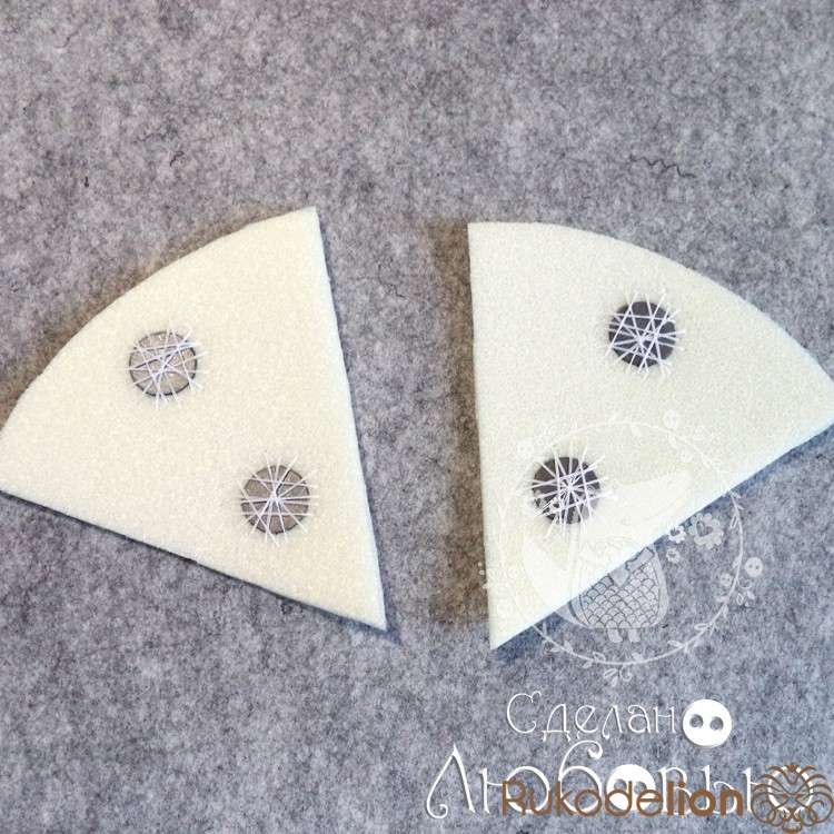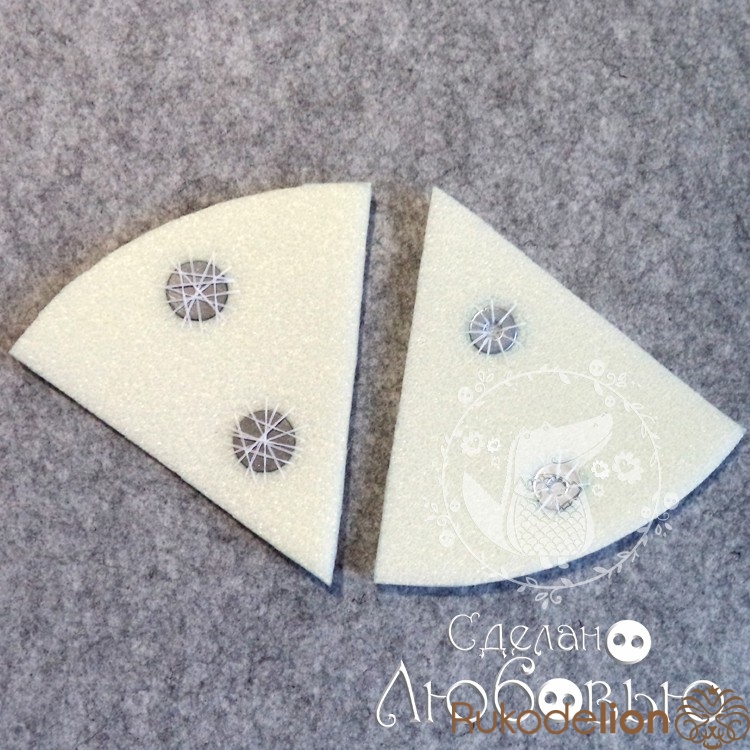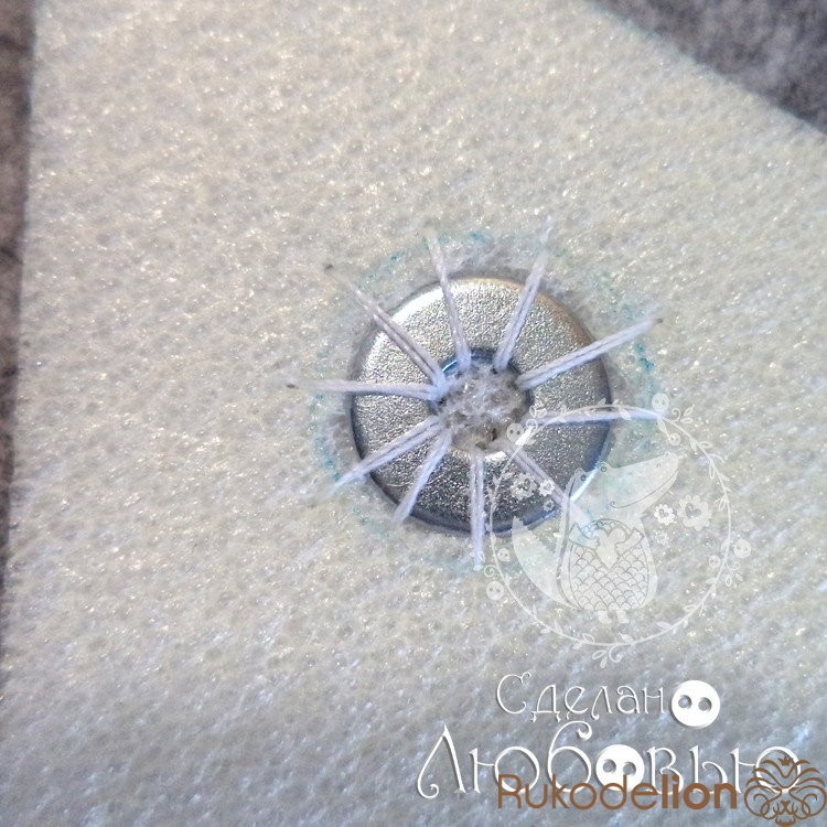 Закрепляем их нитью в произвольном порядке, захватывая поролон, как показано на фото. Стараемся, чтобы с обеих сторон было закреплено равномерно.