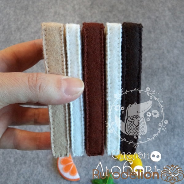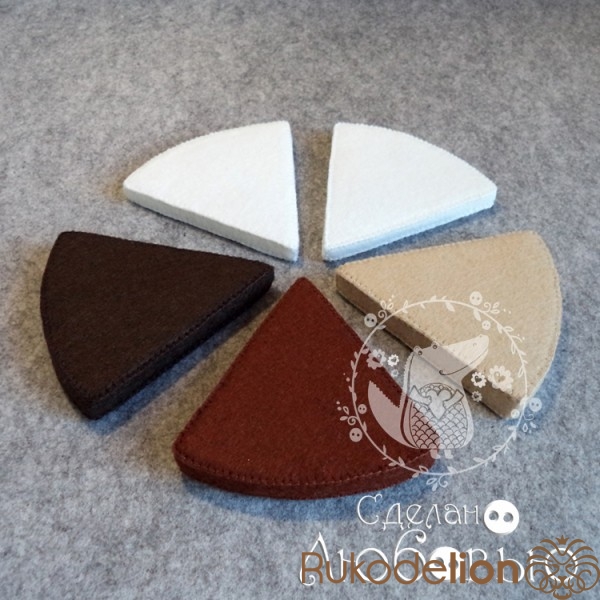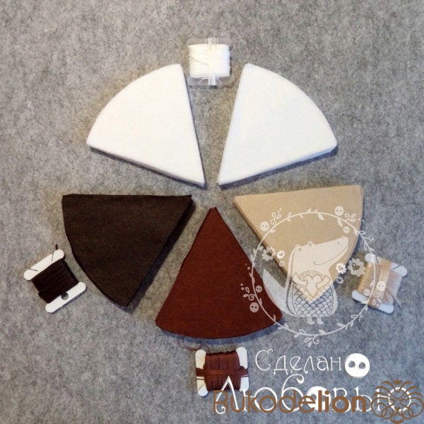 Фетр мягкий: белый (или кремовый), бежевый, коричневый, темно коричневый (шоколадный). Я использую испанский полушерстяной фетр.