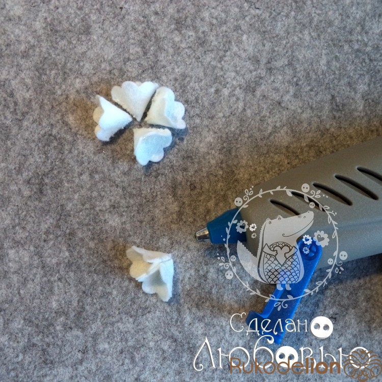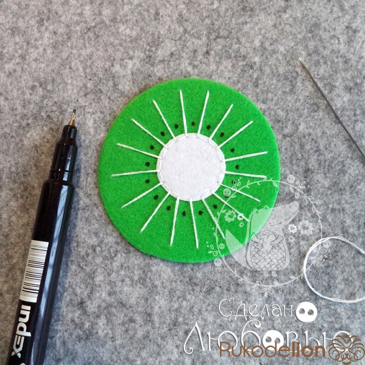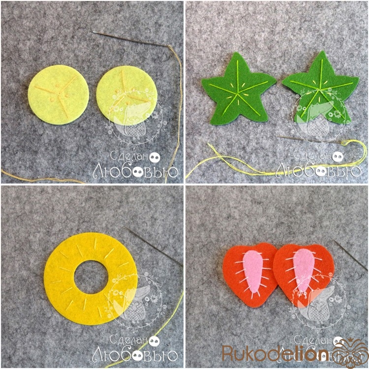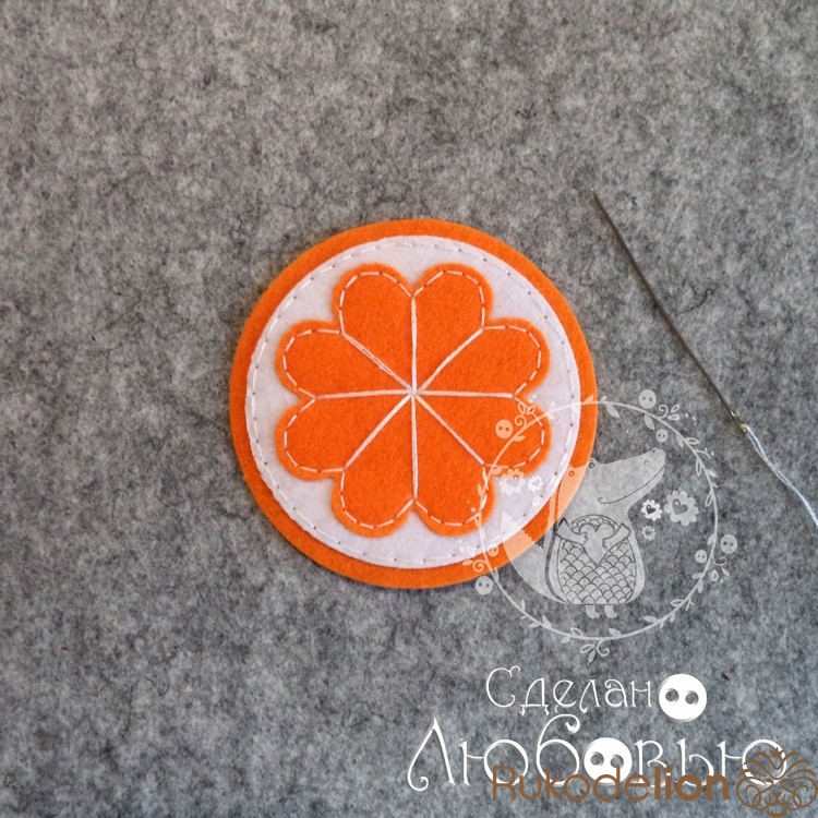 Подбираем ниточки в тон фетра, и пришиваем все детали швом "назад иголка". Я делала стежки примерно 2 - 3 мм, пришивала в одну нитку.