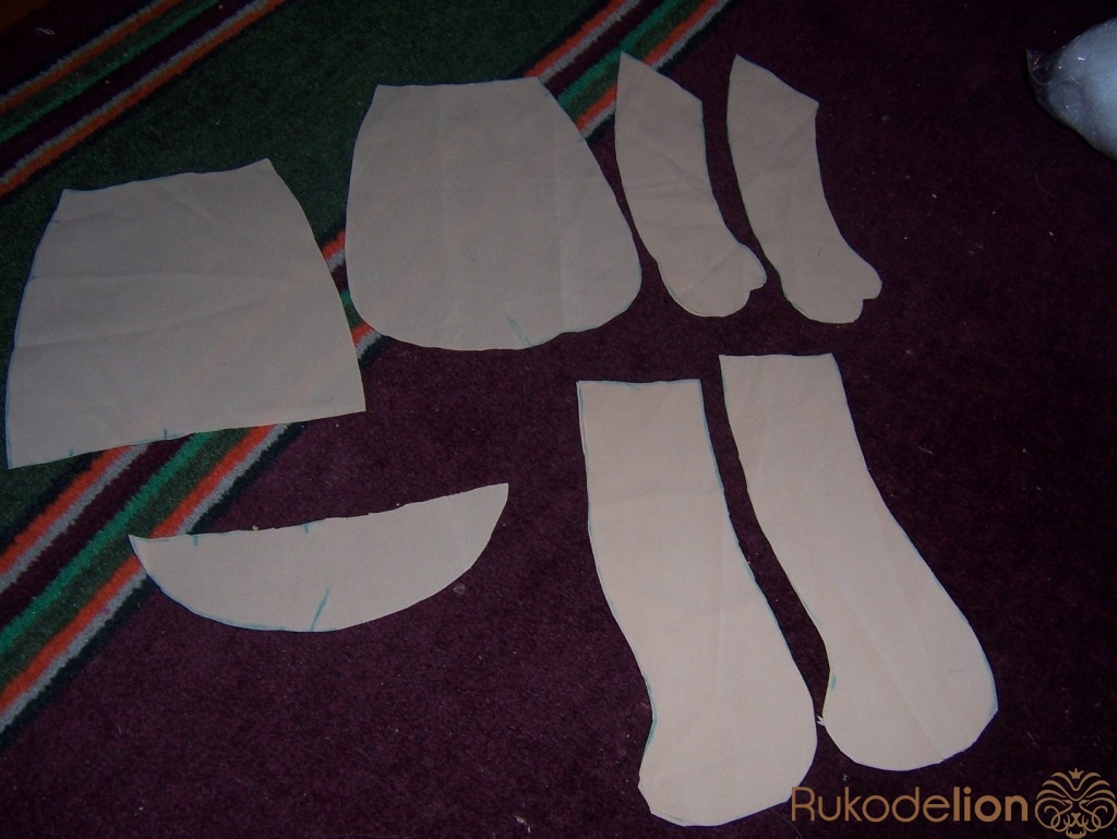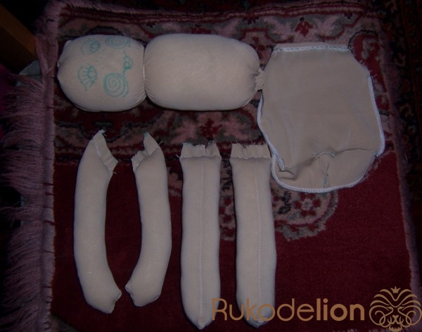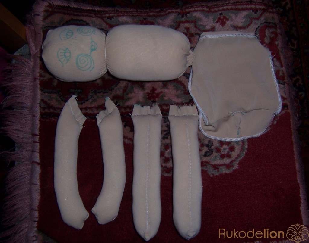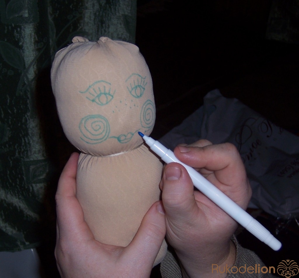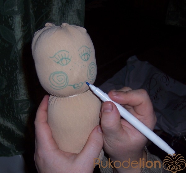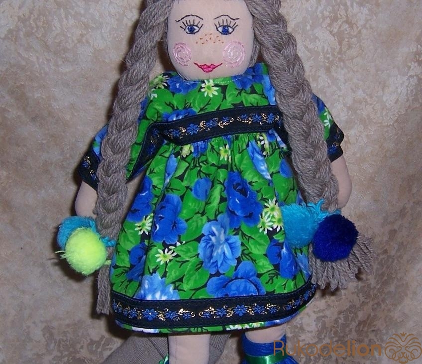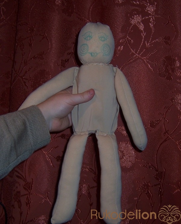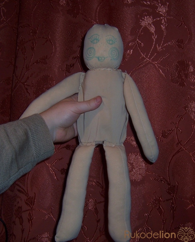 Пошив куклы-тело и одежда(платье и штанишки) шьётся на машинке,можно вручную, лицо вышивается мулине.