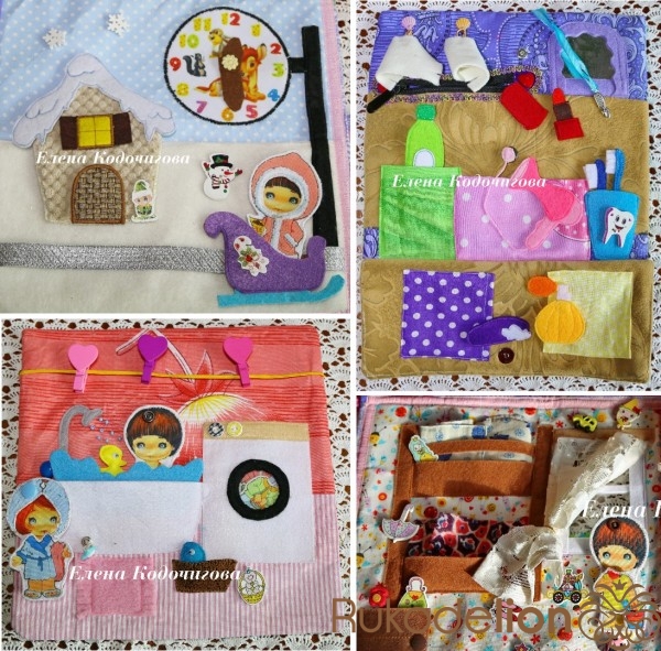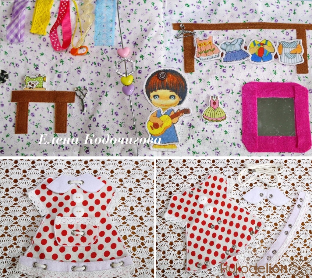 Перед вами очень интересная книга. Это книга-сумка с застёжками со всех сторон. Её удобно переносить, одев на плечо. В ней собраны сюжеты, которые происходят у нас ежедневно: проснуться, одеться, умыться, перекусить, погулять, а кроме того и позаниматься различными занятиями. Девочки постарше уже смогут поучиться готовить на игрушечной кухне компоты, супы, печь торты и пироги. На страничке с ателье - учиться шить платье с помощью задания «шнуровка». На развороте сада - заботиться о растениях, а так же составлять различные букеты. А кто не любит одевать куколок в различные наряды? Кроме игровых моментов в этой книге малышка может развивать мелкую моторику, изучать различные застёжки, а так же изучать цвета и геометрические фигуры. Такая замечательная книга станет верным другом любой девочке на много лет.