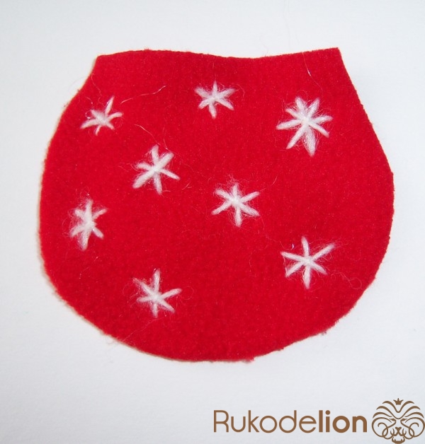 Шарфик я не завязывала, а скрепила вышитой снежинкой (и также прихватила спереди нитью к основанию, чтобы на клюв не налезал)