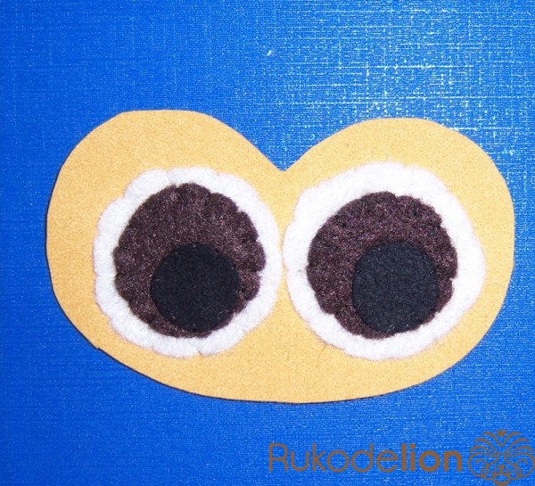7.  На "фейс" нашиваем подготовленые глаза