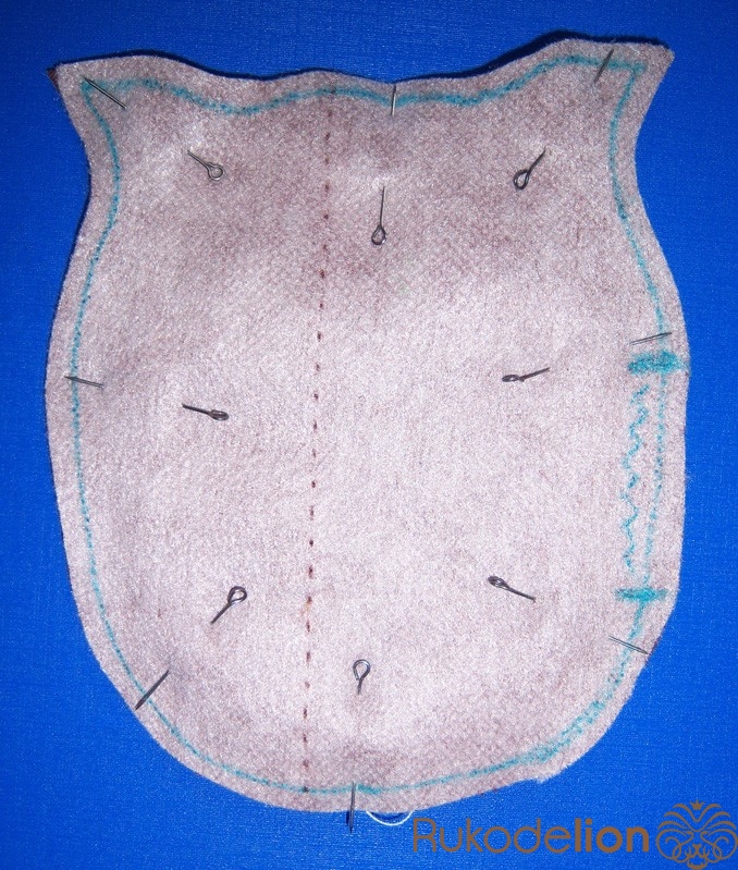 1. Сшиваем обе детали туловища между собой, оставляя отверстие для выворачивания (лучше в месте крепления крыла)