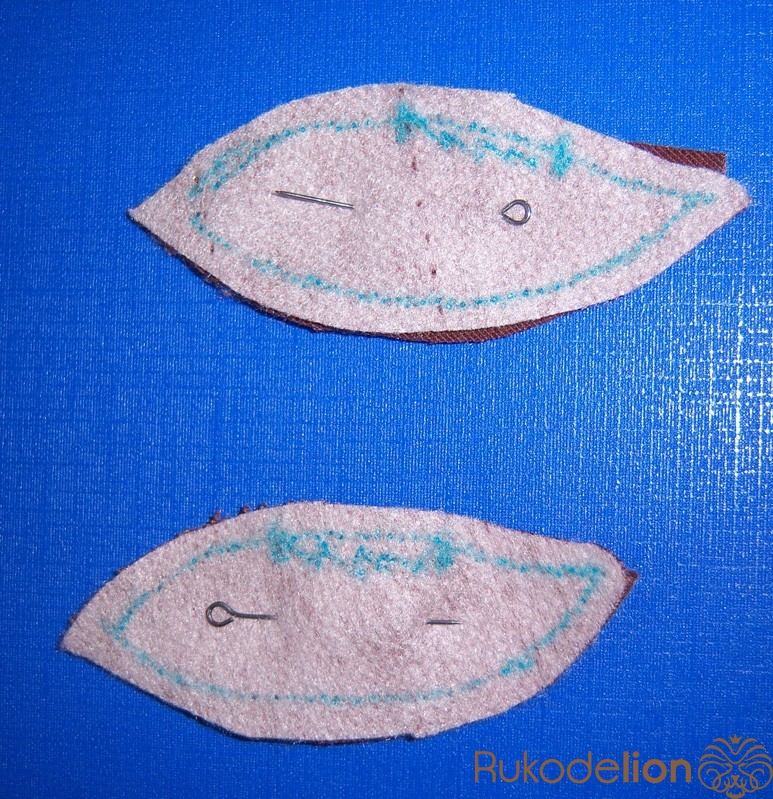 3.  Накладываем друг на друга, пришиваем вручную (наверное, можно и приклеивать, но я делала, как надежнее :-))