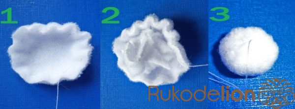 4.   Заворачиваем белый флис и вручную пришиваем к основанию потайными стежками, подвертая срез
