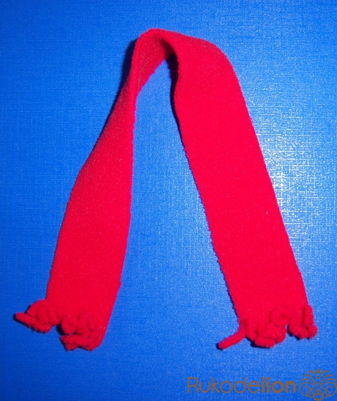 9.   Для шарфа я отрезала полоску края понадрезала и немножко растянула - получилось, будто залохмачены :-)