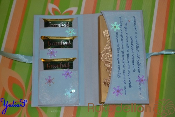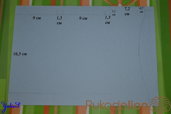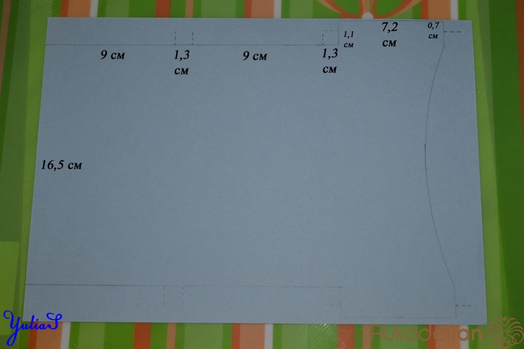 - прямоугольник размером 6,8х16 см со скругленной одной стороной (для кармашка под плитку шоколада)